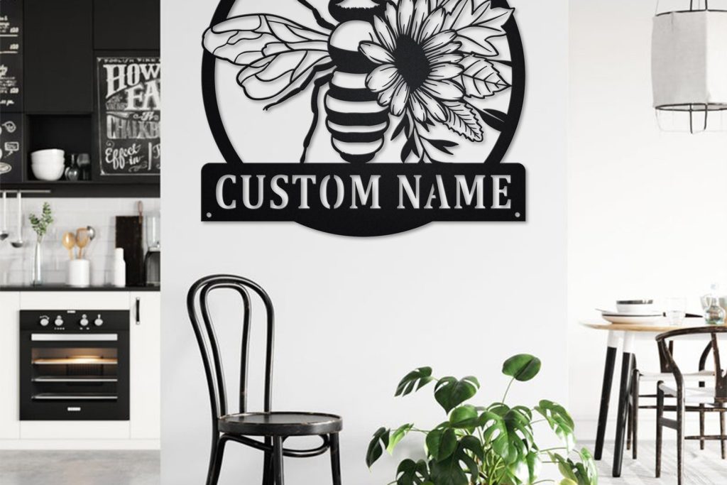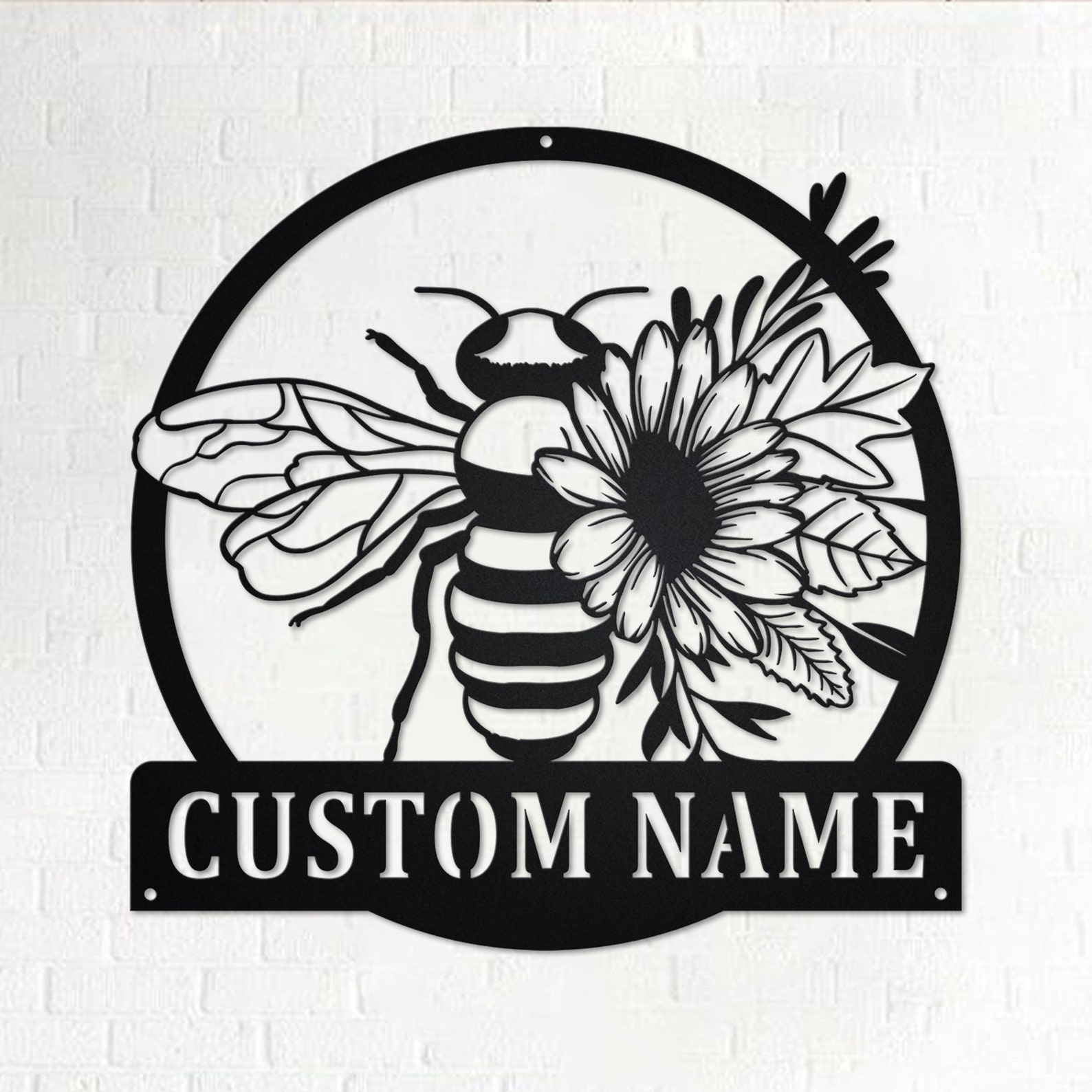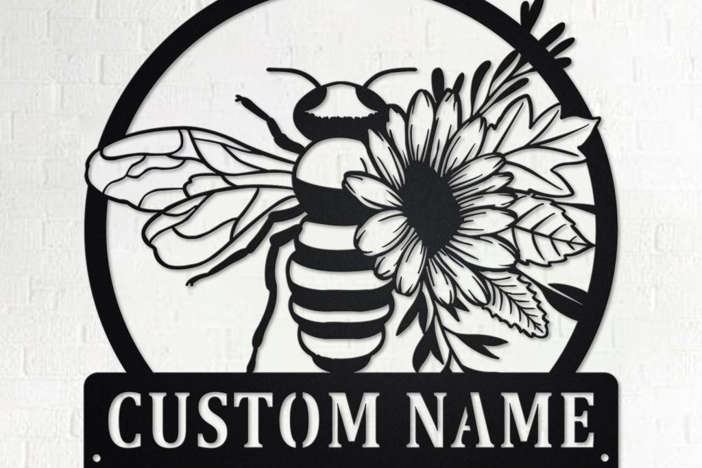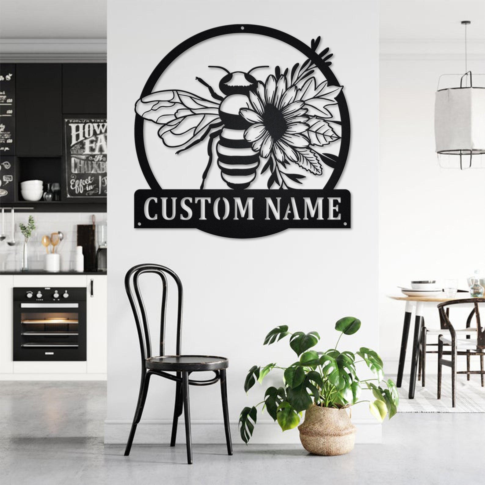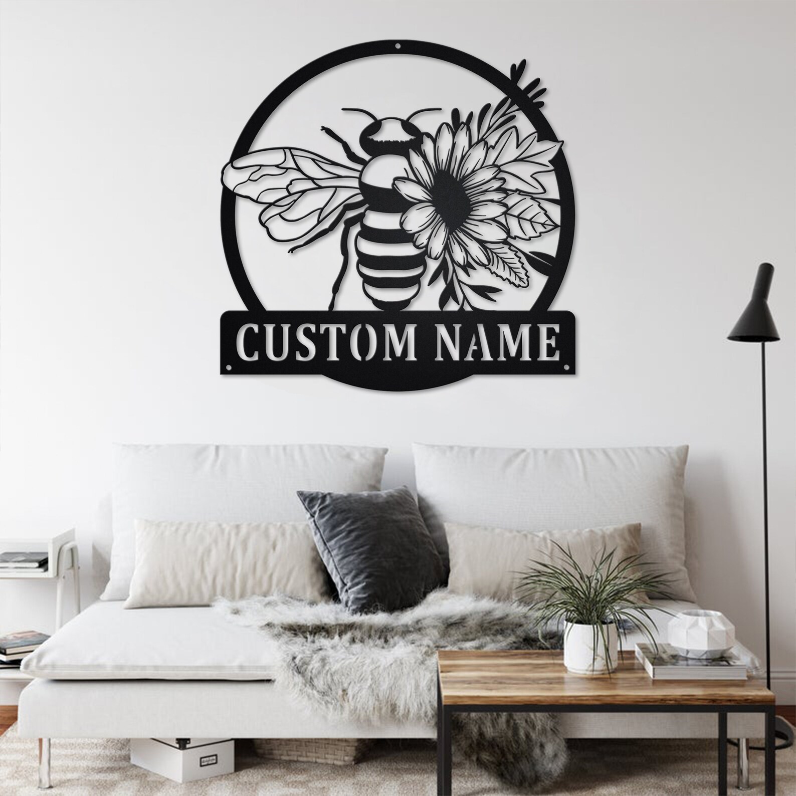 Custom Flower Bee Metal Sign with LED – Room Decoration
