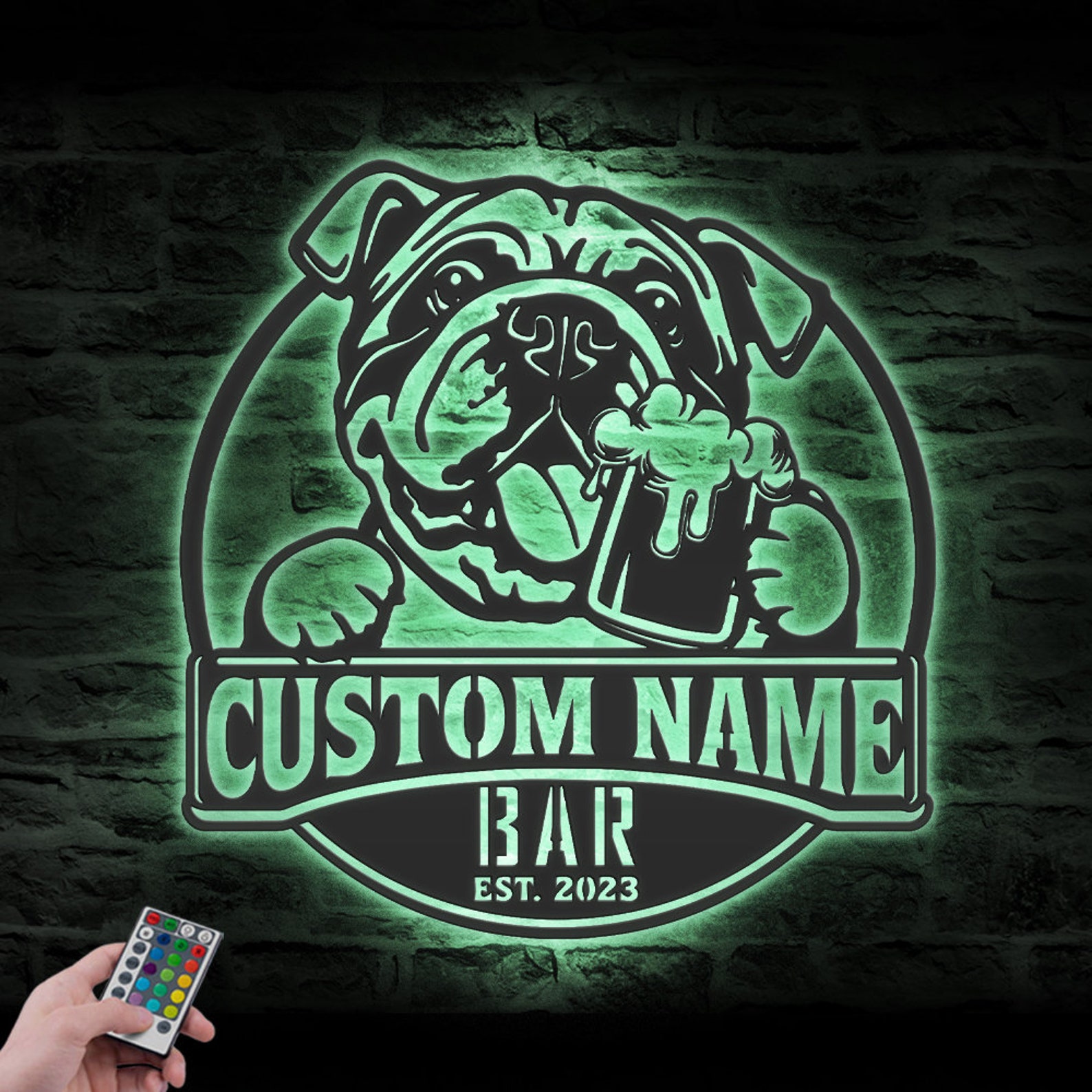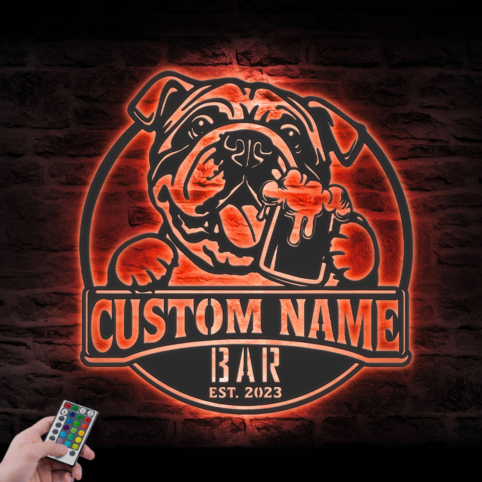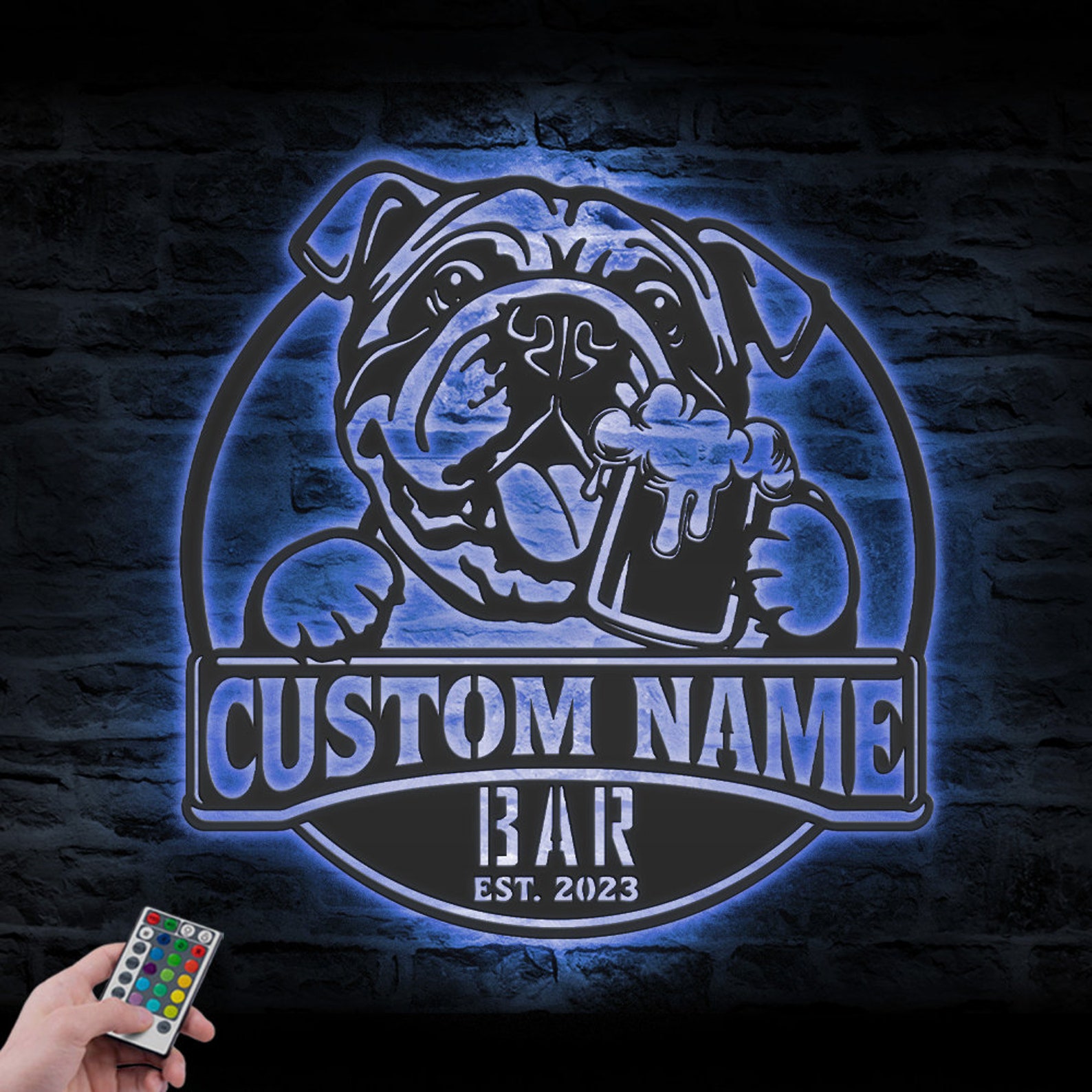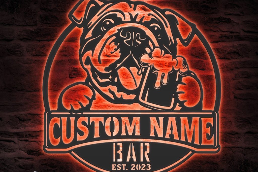 Be the first to review “Custom Funny Bulldog Beer Pub Metal Wall Art – LED Light Sign”