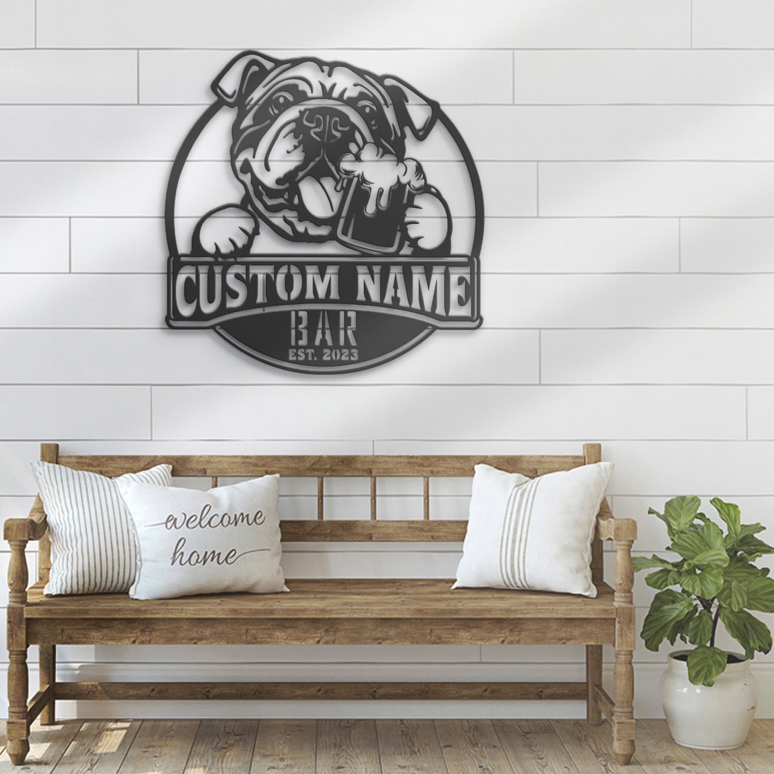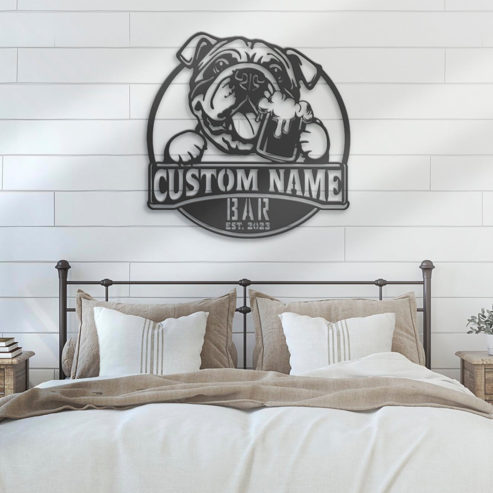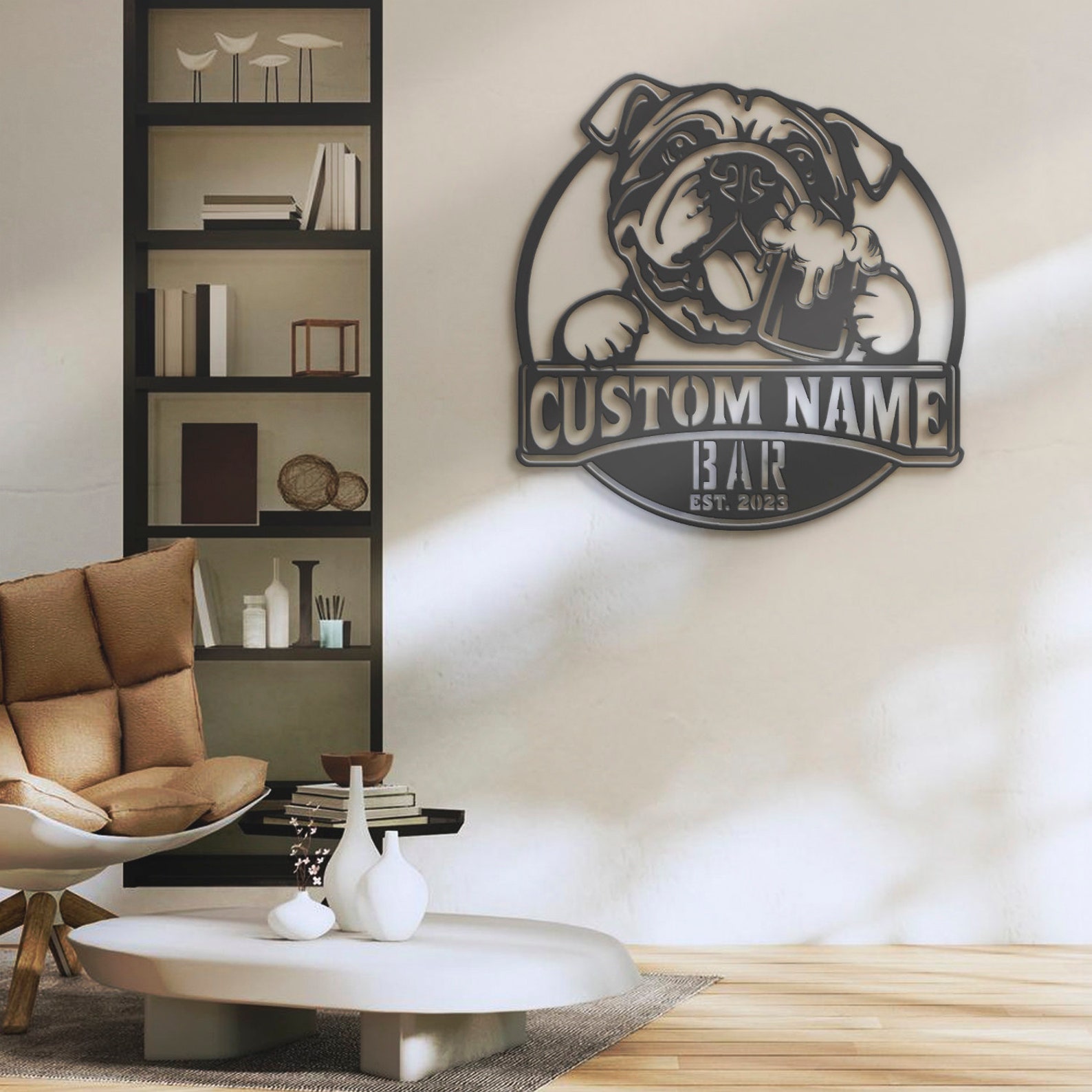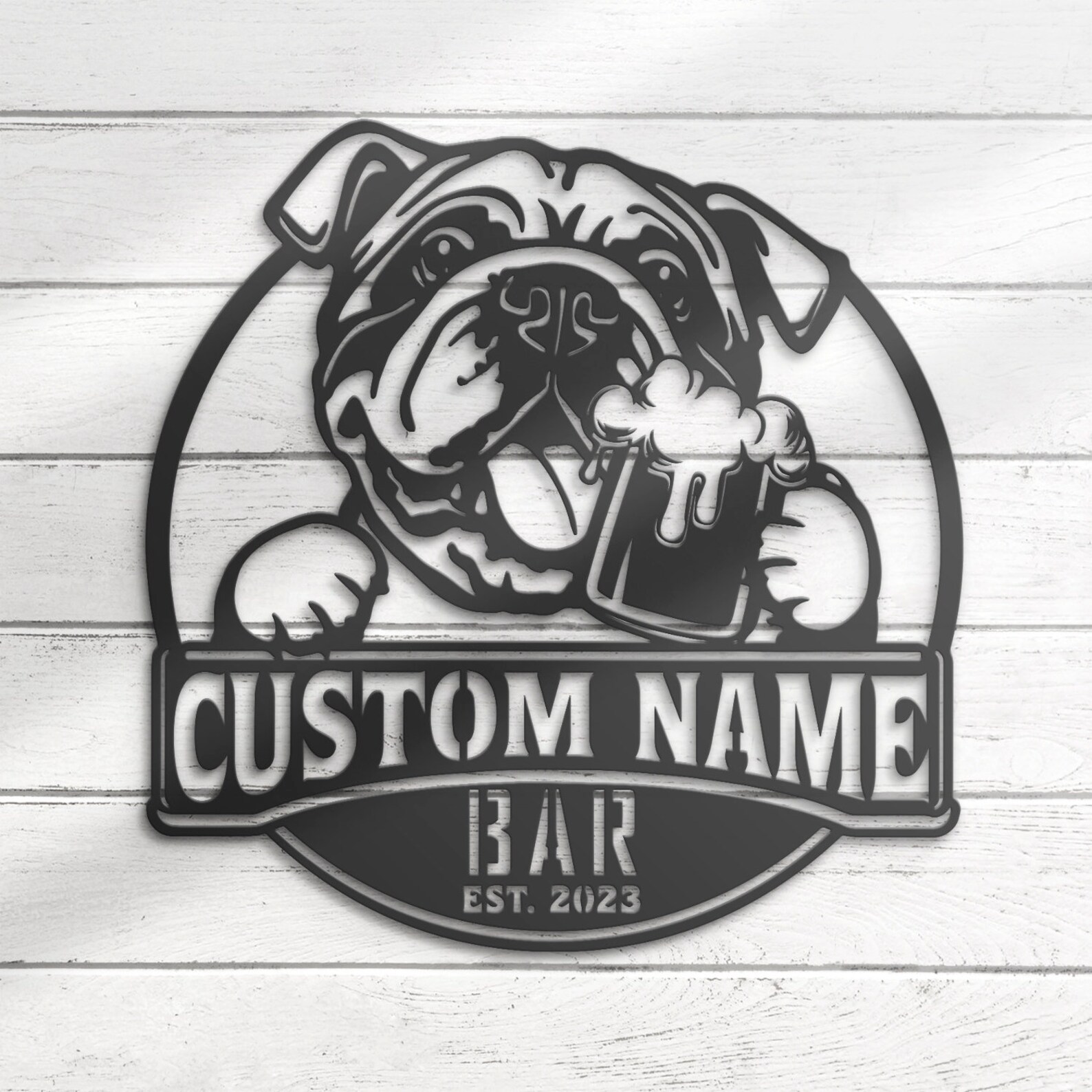 Be the first to review “Custom Funny Bulldog Beer Pub Metal Wall Art – LED Light Sign”