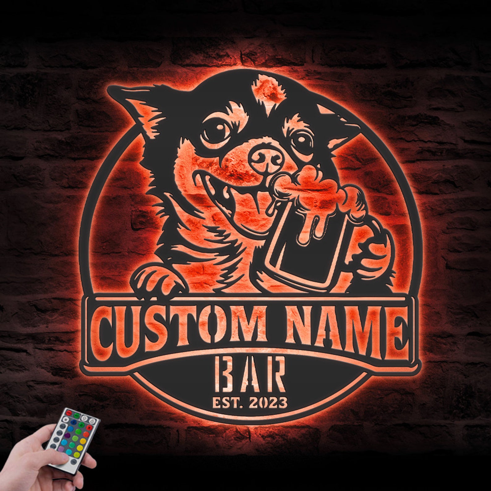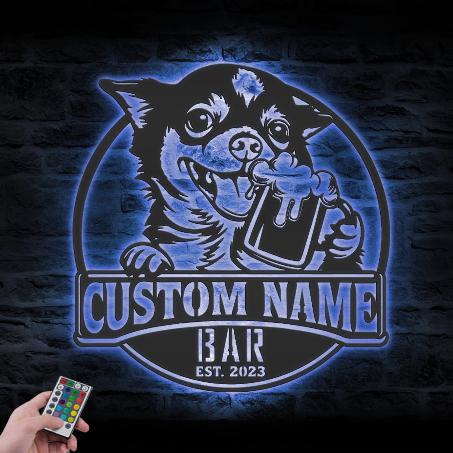 Be the first to review “Custom Funny Chihuahua Beer Pub Metal Wall Art – LED Light, Personalized Sign”