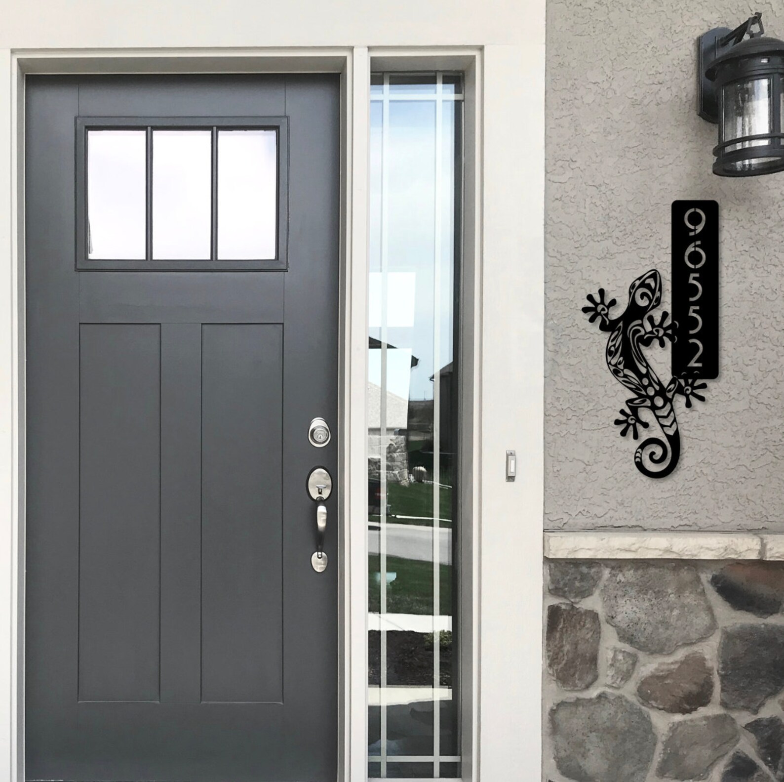 Gecko metal house number sign. Elevate your home decor with a beautiful metal wall sign. Made with 18 gauge steel and powder coated in your choice of 5 colors, this sign is built to withstand the elements for years of enjoyment. Add a touch of elegance to your home on the inside, outside, or both!