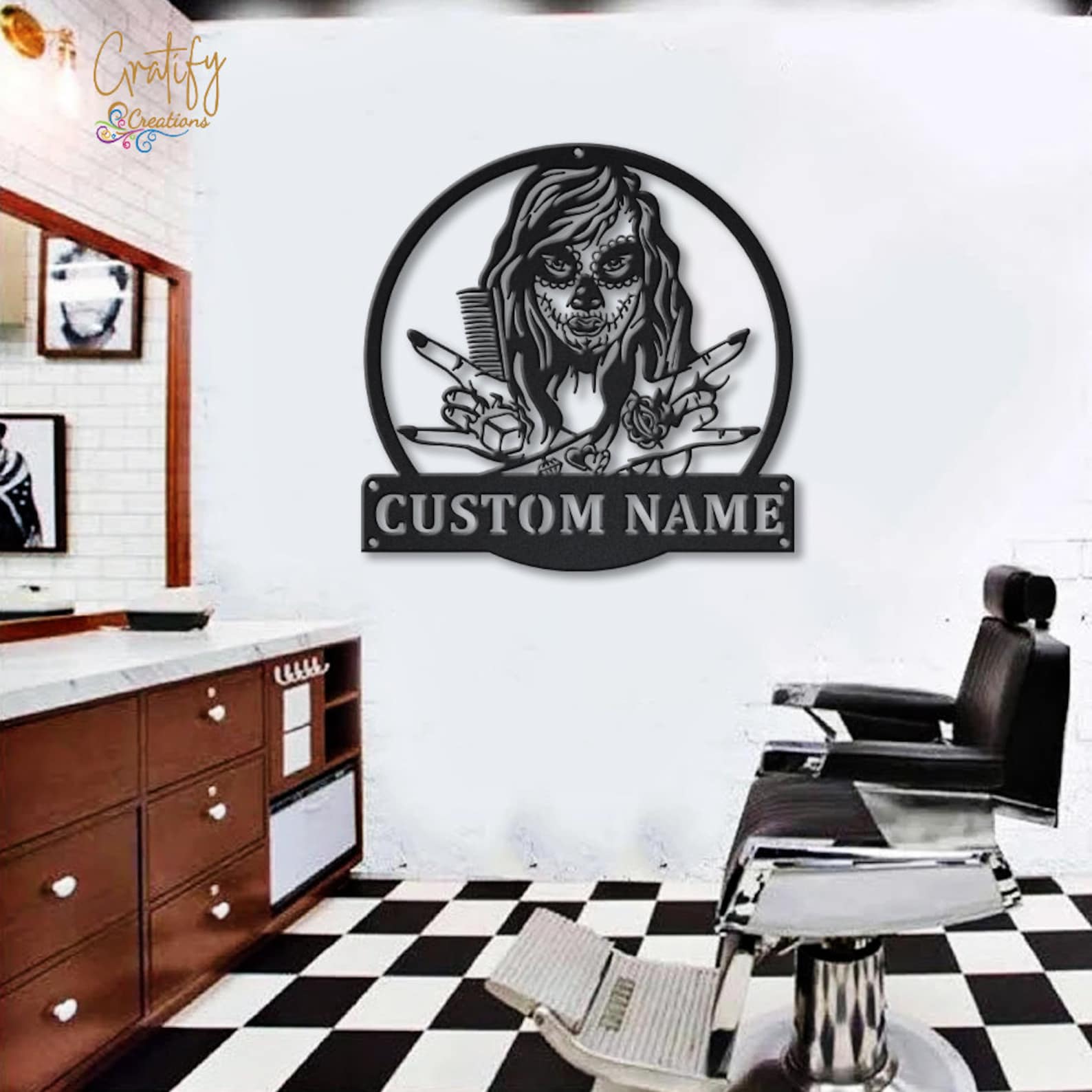 Custom Hair Hustler Metal Sign with LED Lights V4