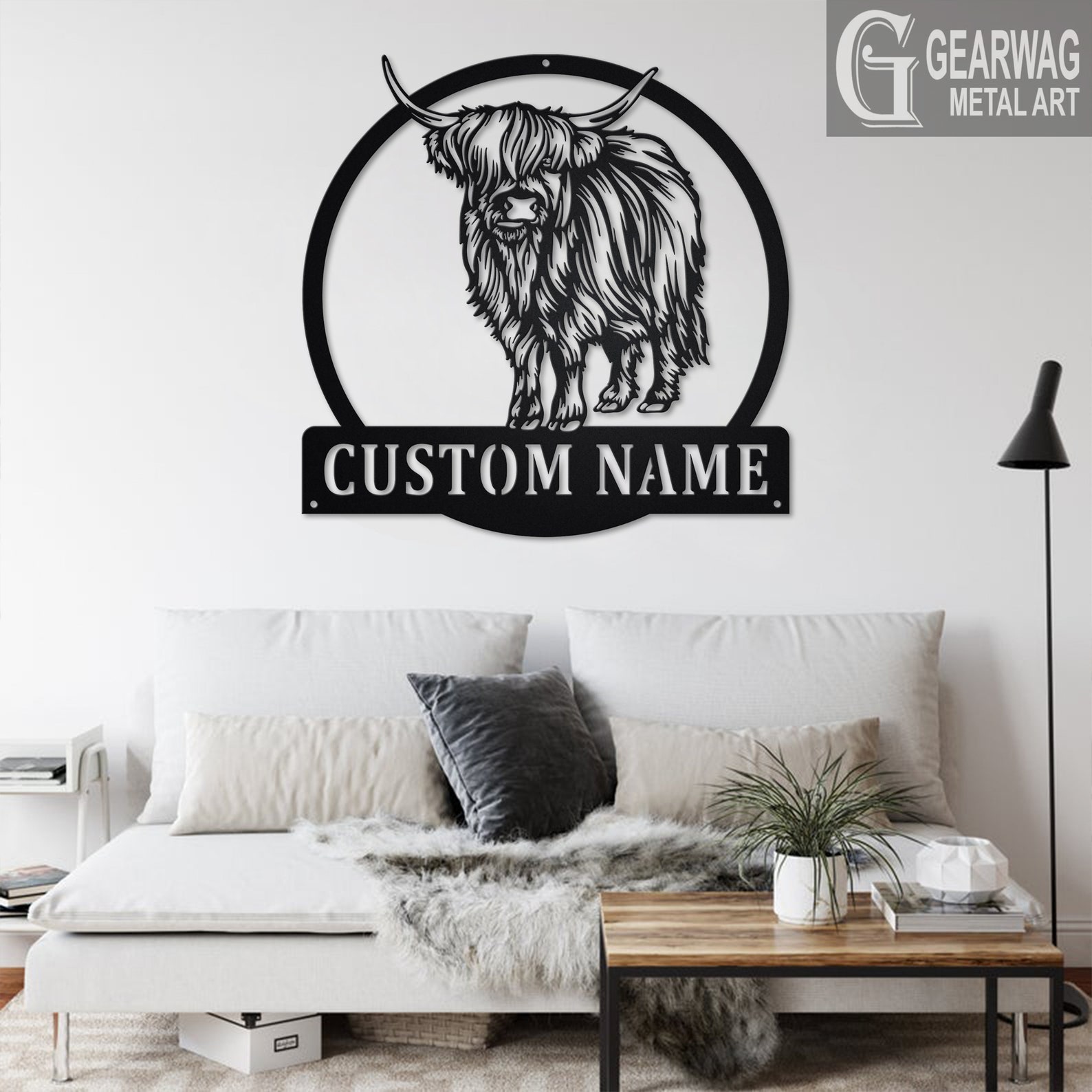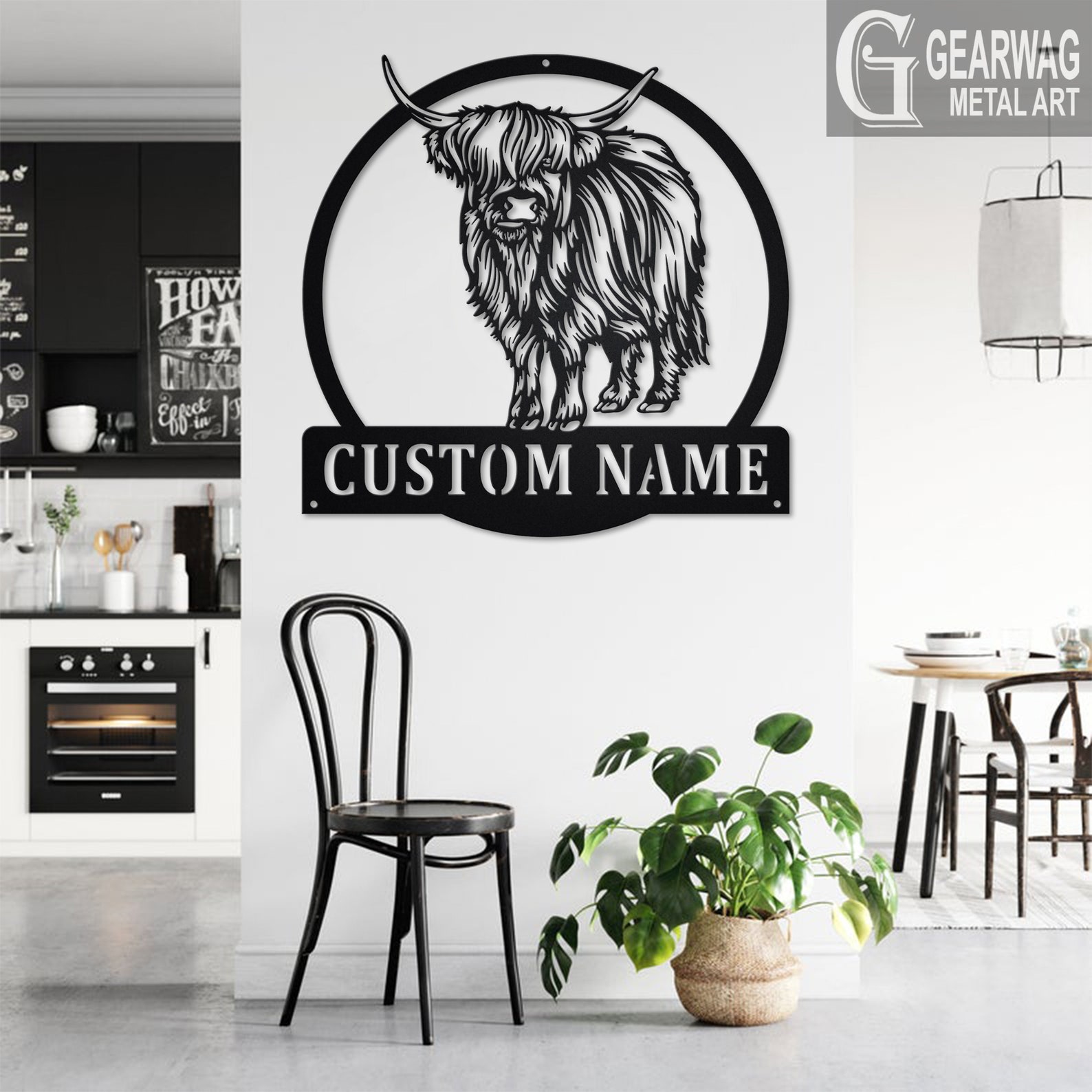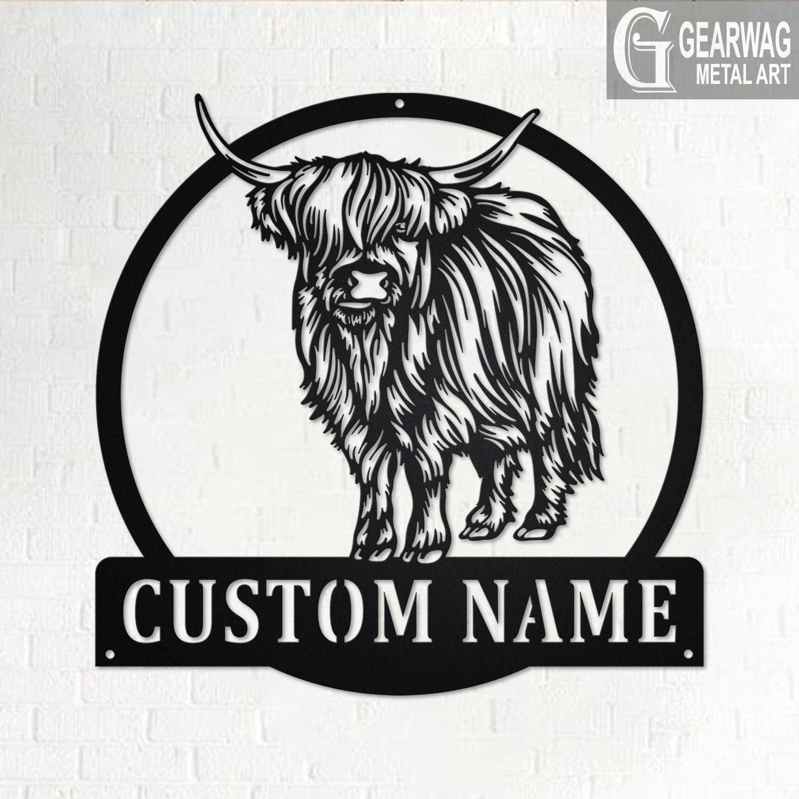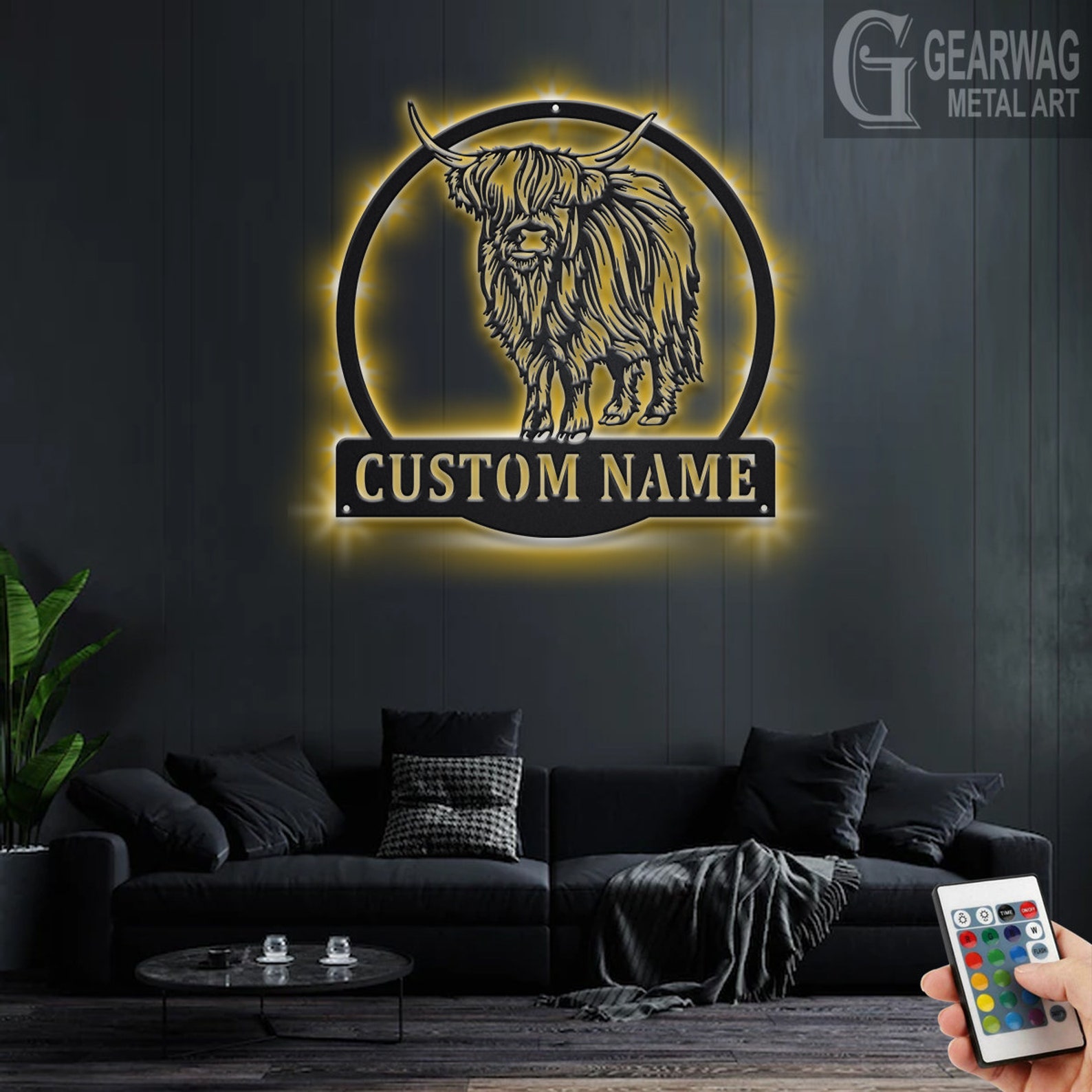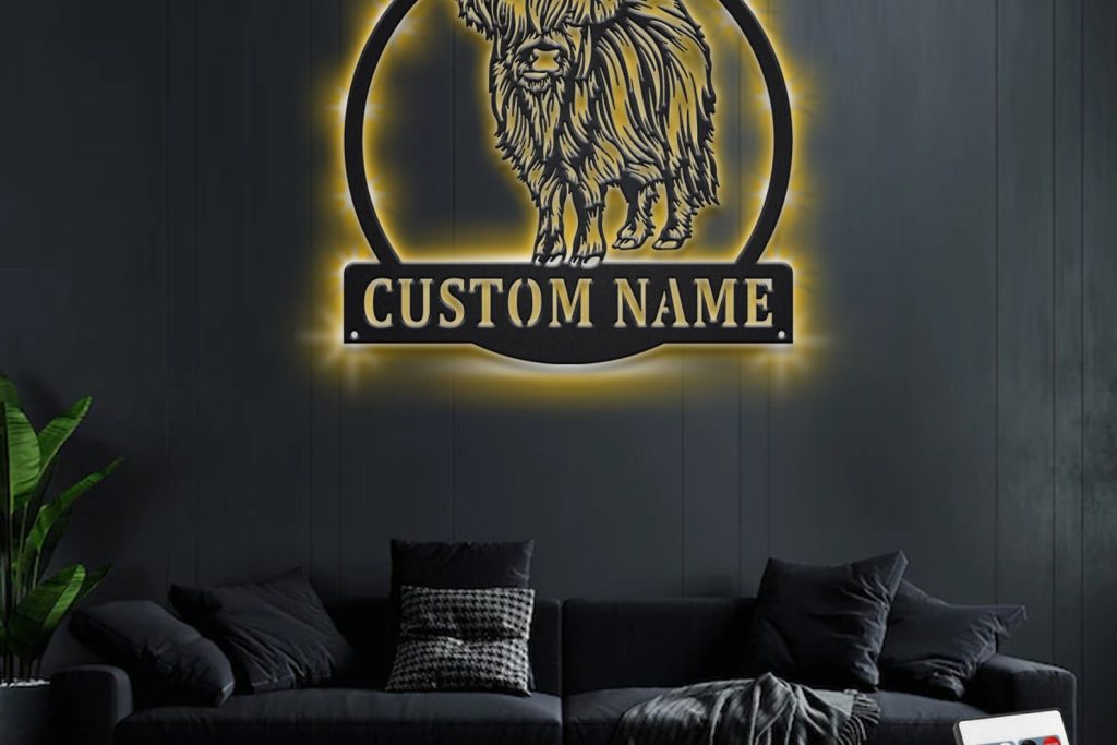 Custom Highland Cow Metal Sign with LED – Farm Room Decor