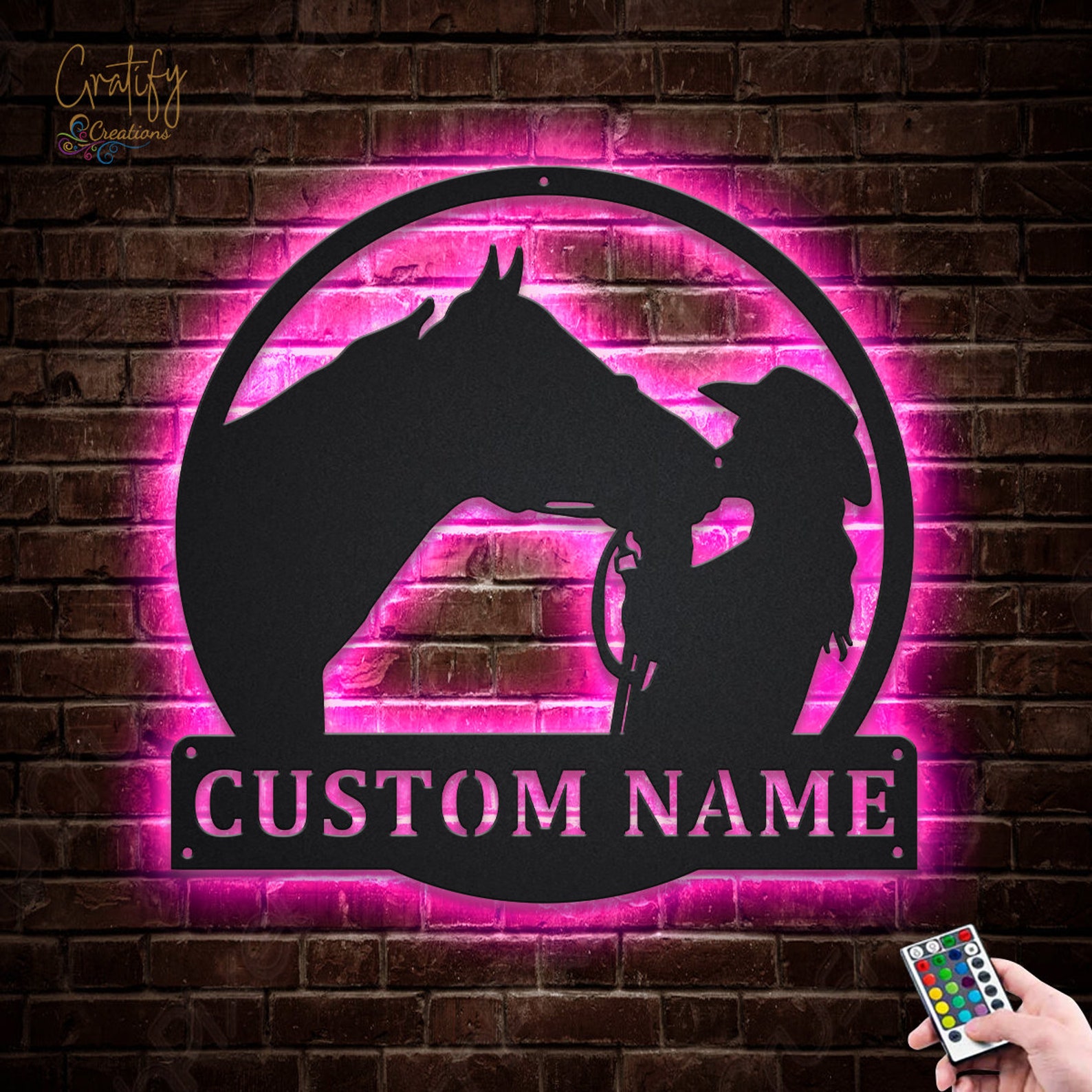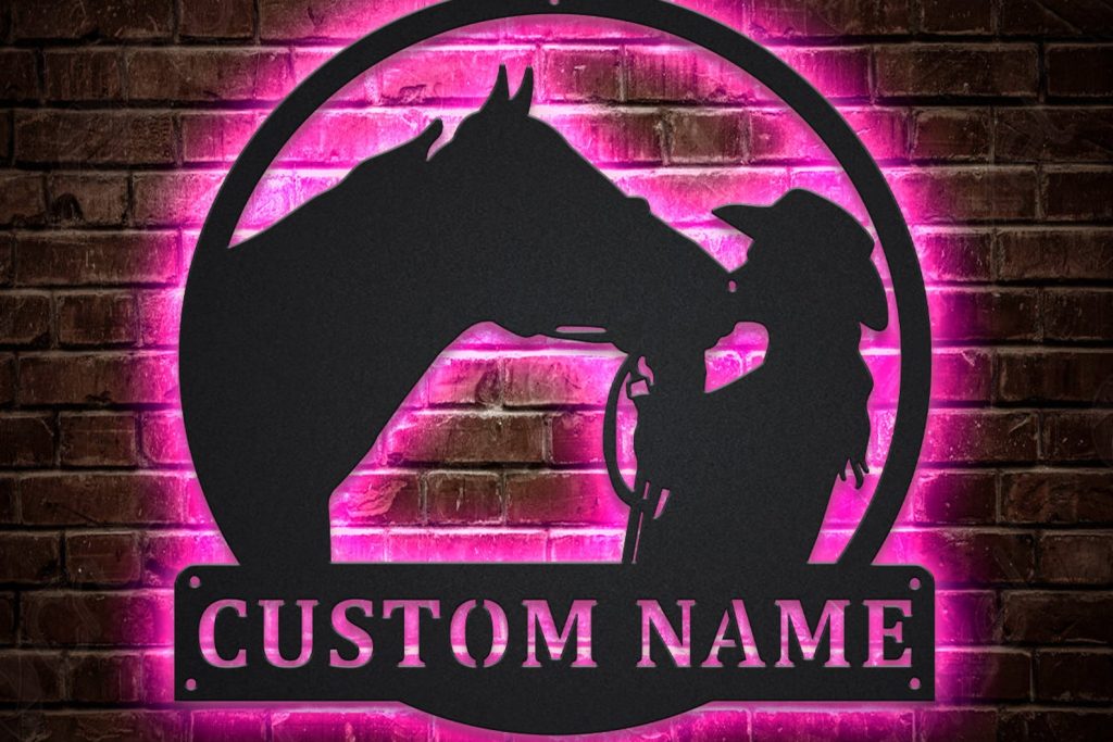 Be the first to review “Custom Horse and Rider Metal Sign with LED Lights V3”