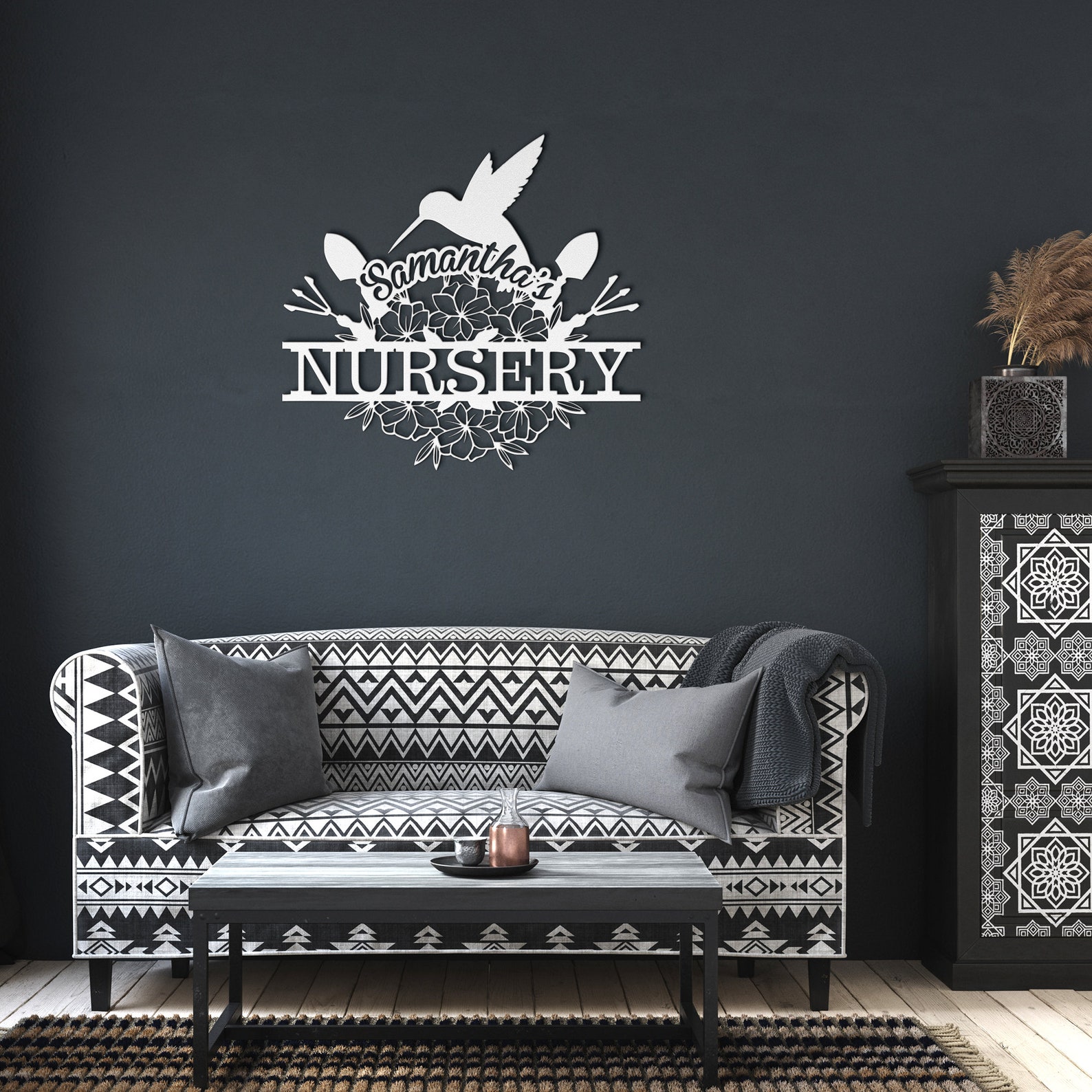 Made with 18 gauge steel and powder coated in your choice of 5 colors, this sign is built to withstand the elements for years of enjoyment. Add a touch of elegance to your home on the inside, outside, or both!
