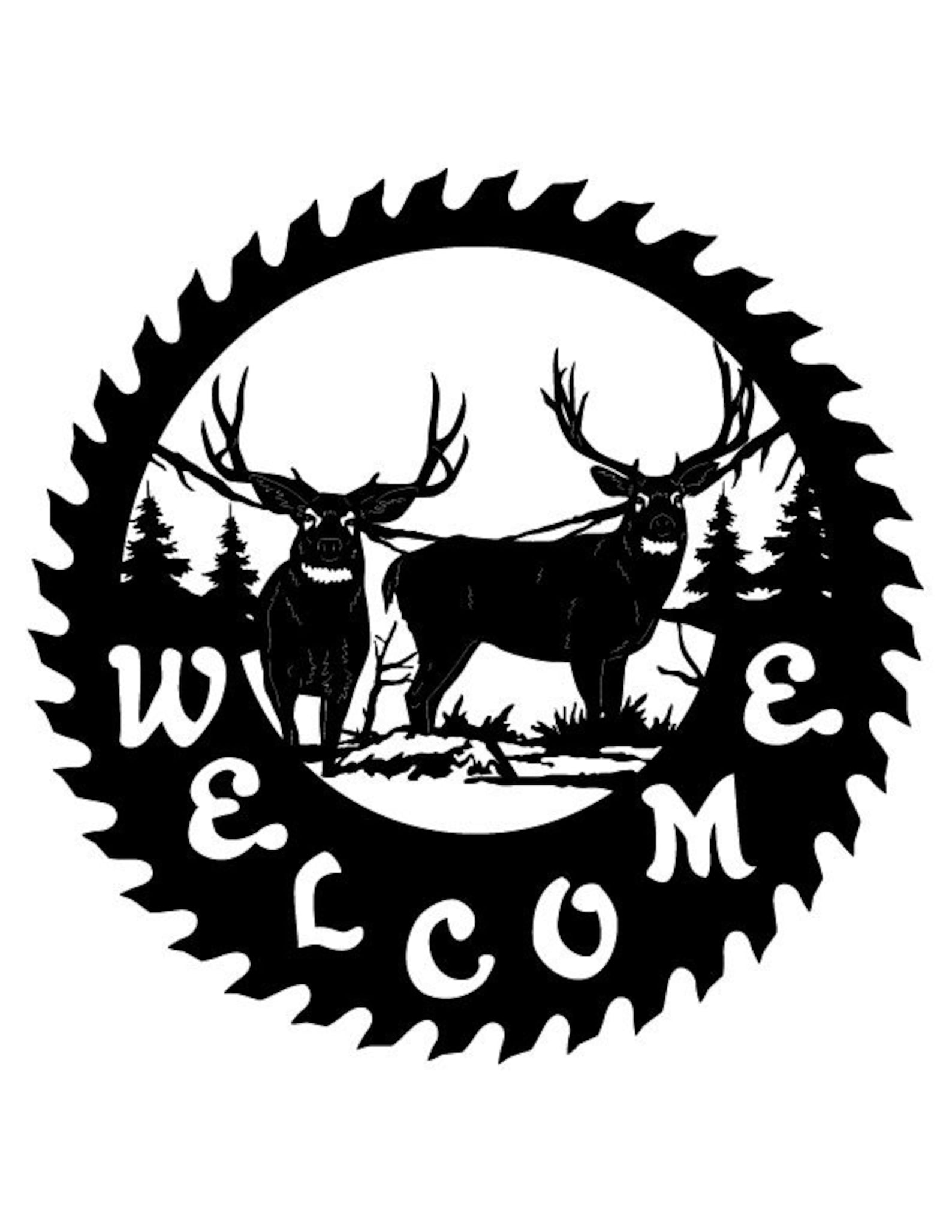 This custom metal personalized monogram sign with elk saw blade can be personalized with your family name or any name you would like. Please be sure to add name in personalization box below!