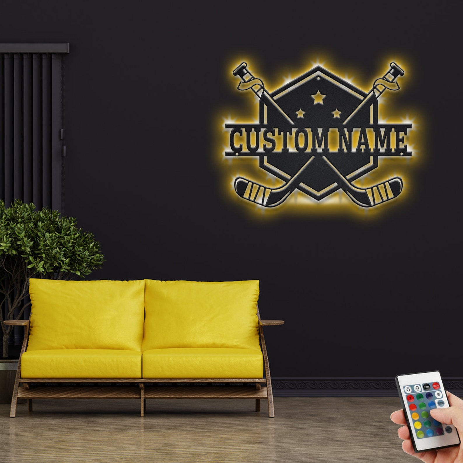 Custom Ice Hockey Metal Sign with LED – Player Room Decoration