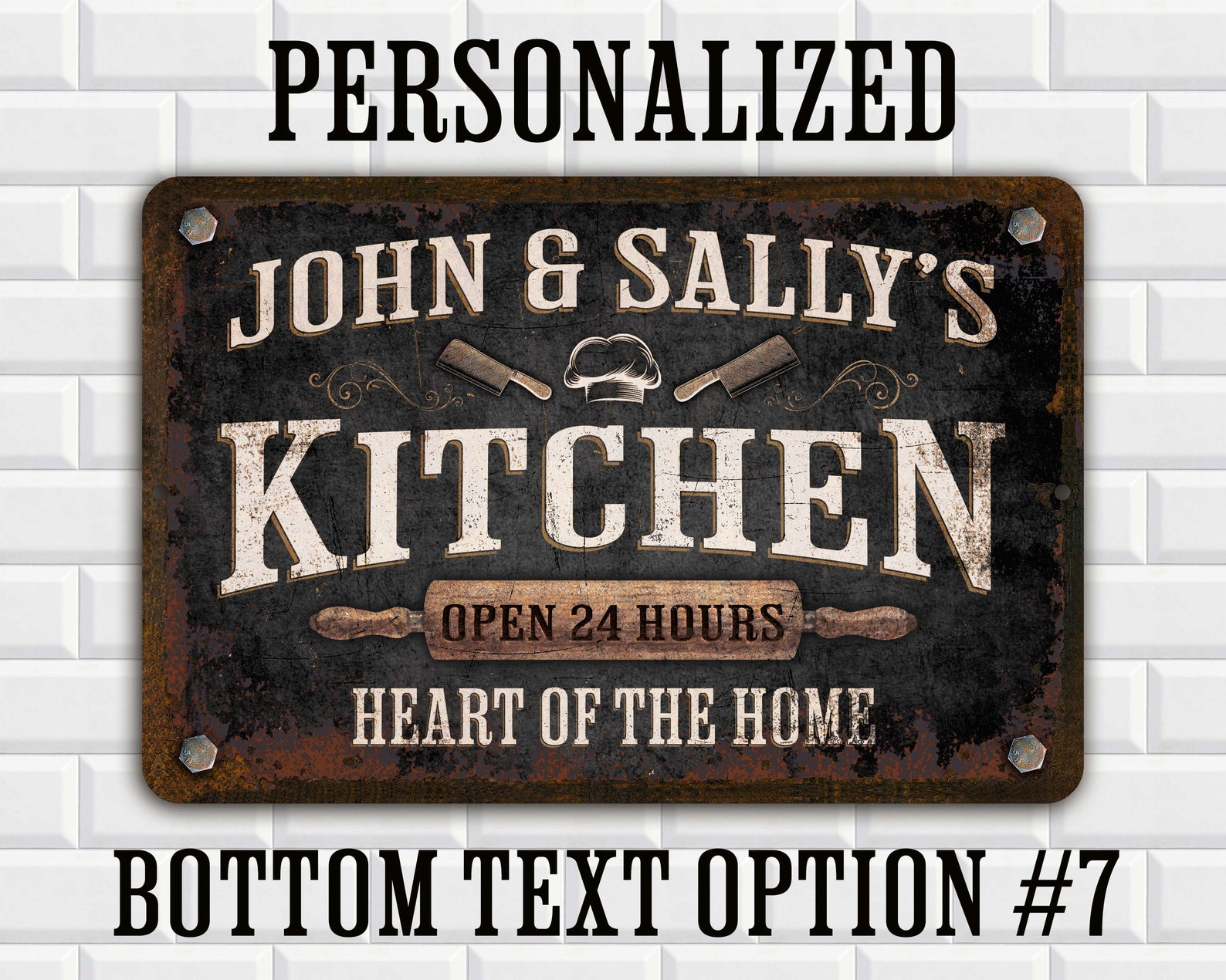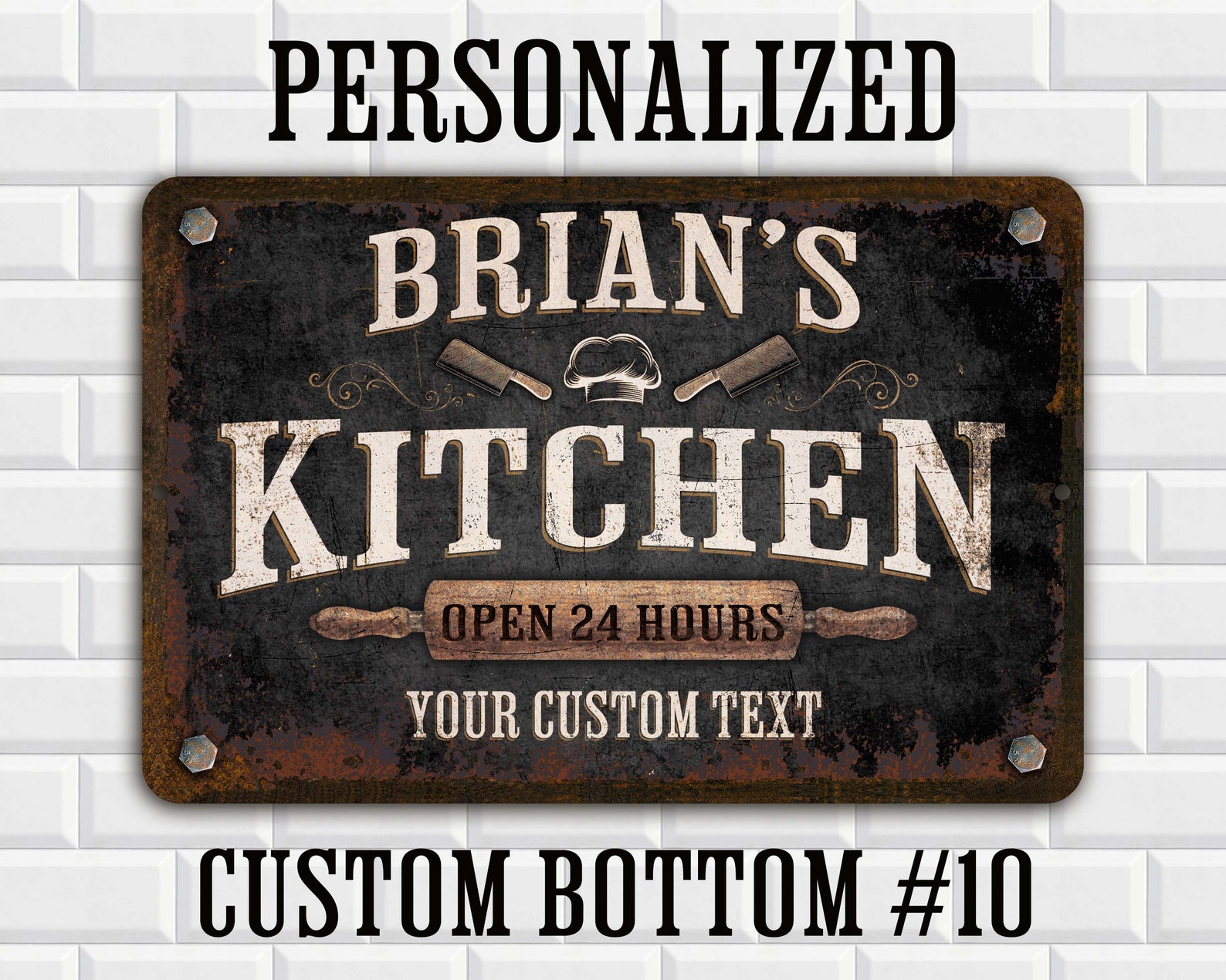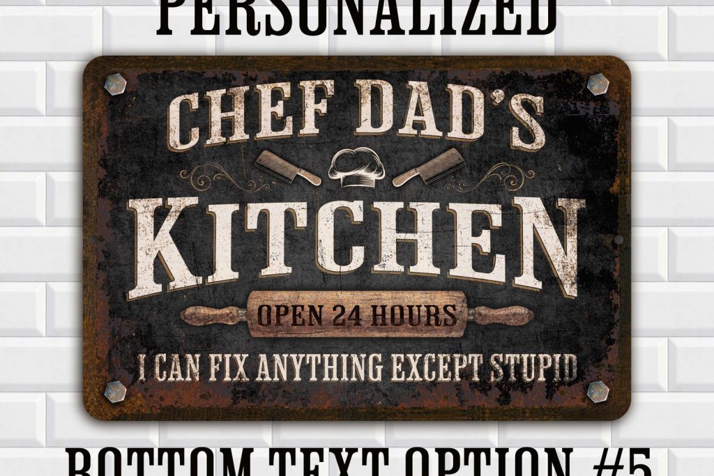 Personalized Black Distressed Metal Kitchen Sign| Customize this Sign with Your Name | Gift for Great Cooks & Chefs | Choose from Many Different Text Options, Some Funny and Some Nice | Designed with a weathered, distressed appearance | For the special person who loves to cook!