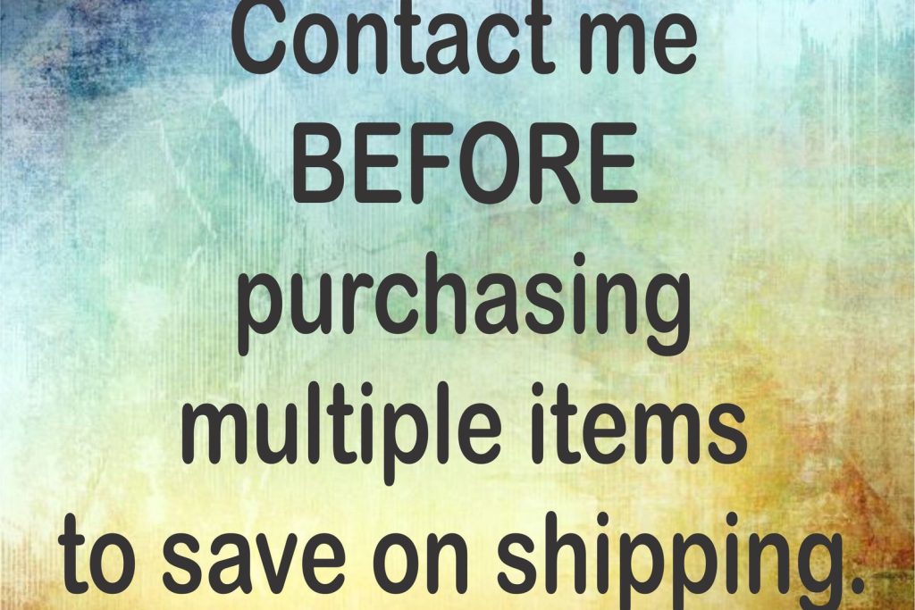 Contact me BEFORE purchasing multiple items to save on shipping. After the the items are purchased it is not possible.
