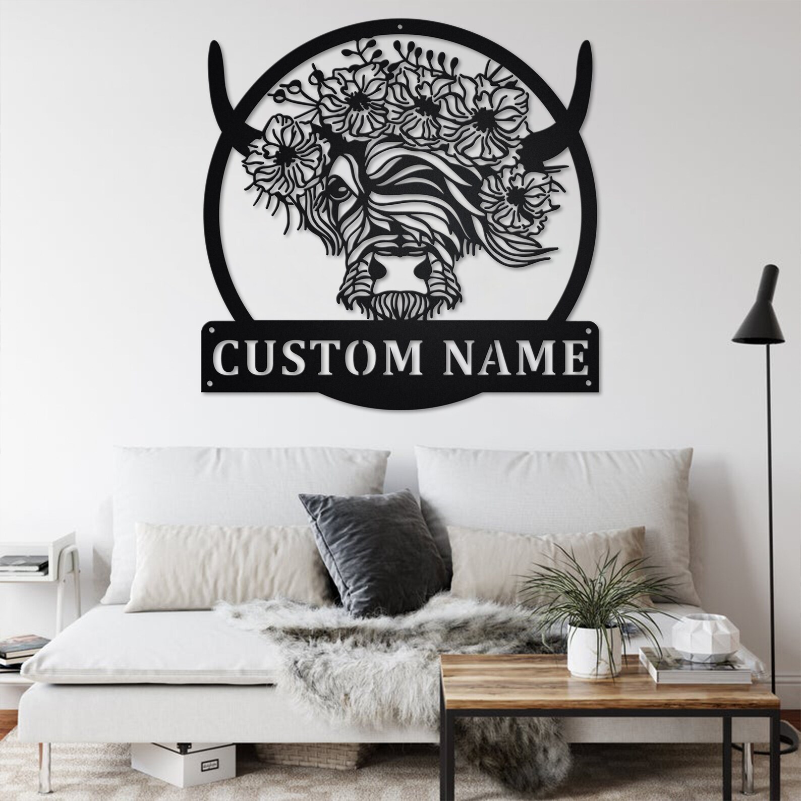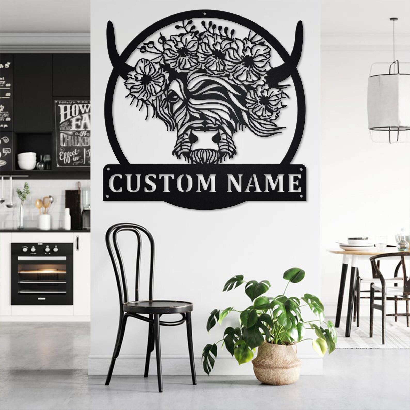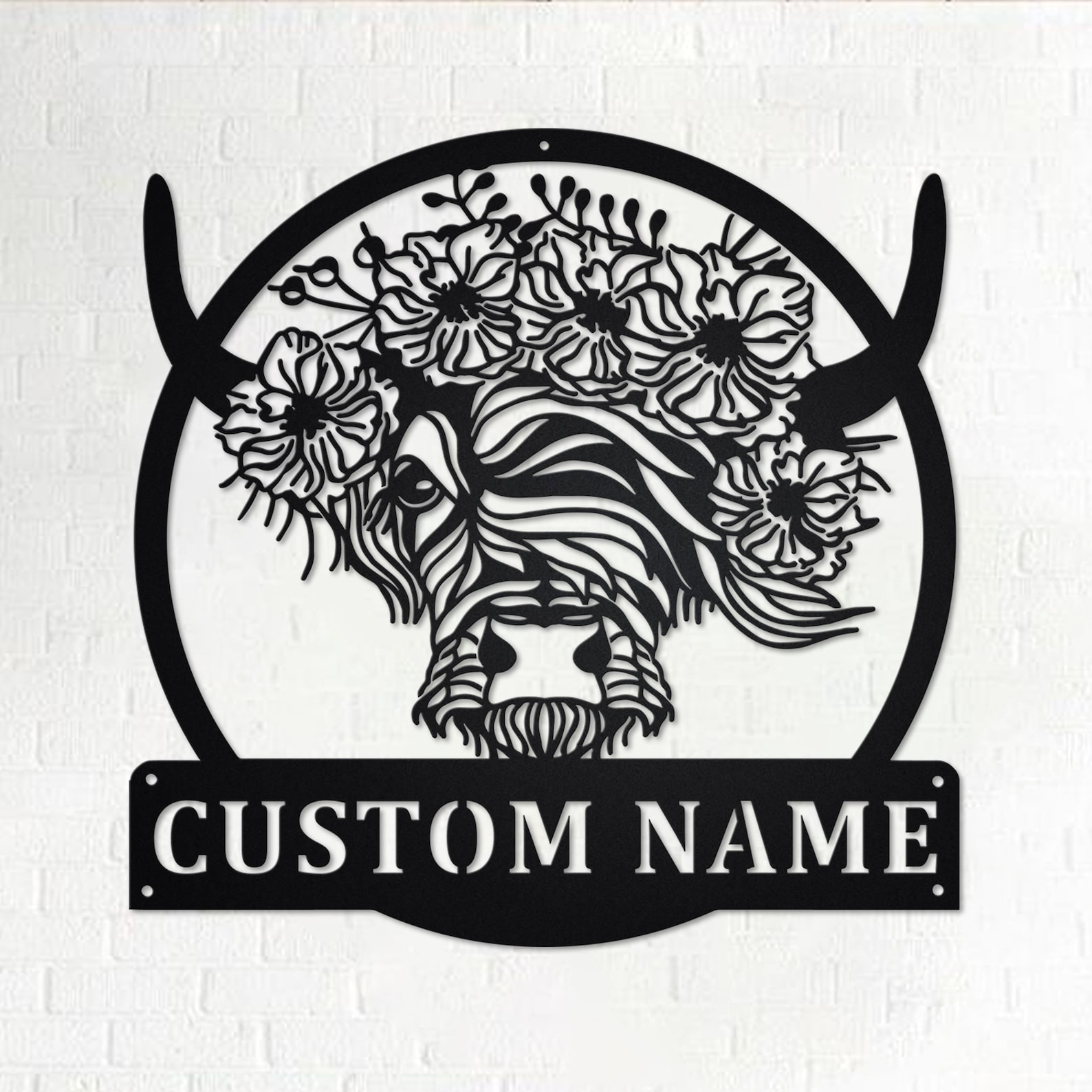 Custom Longhorn Cow Metal Sign – Personalized Farmhouse Decor