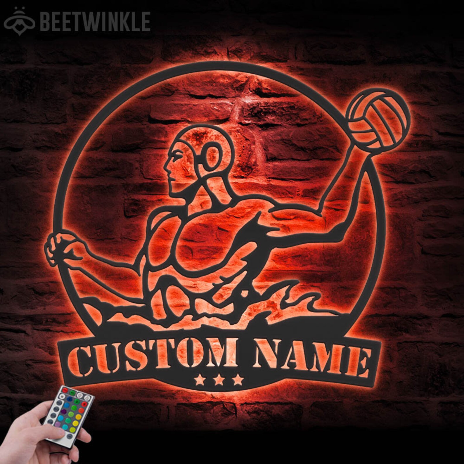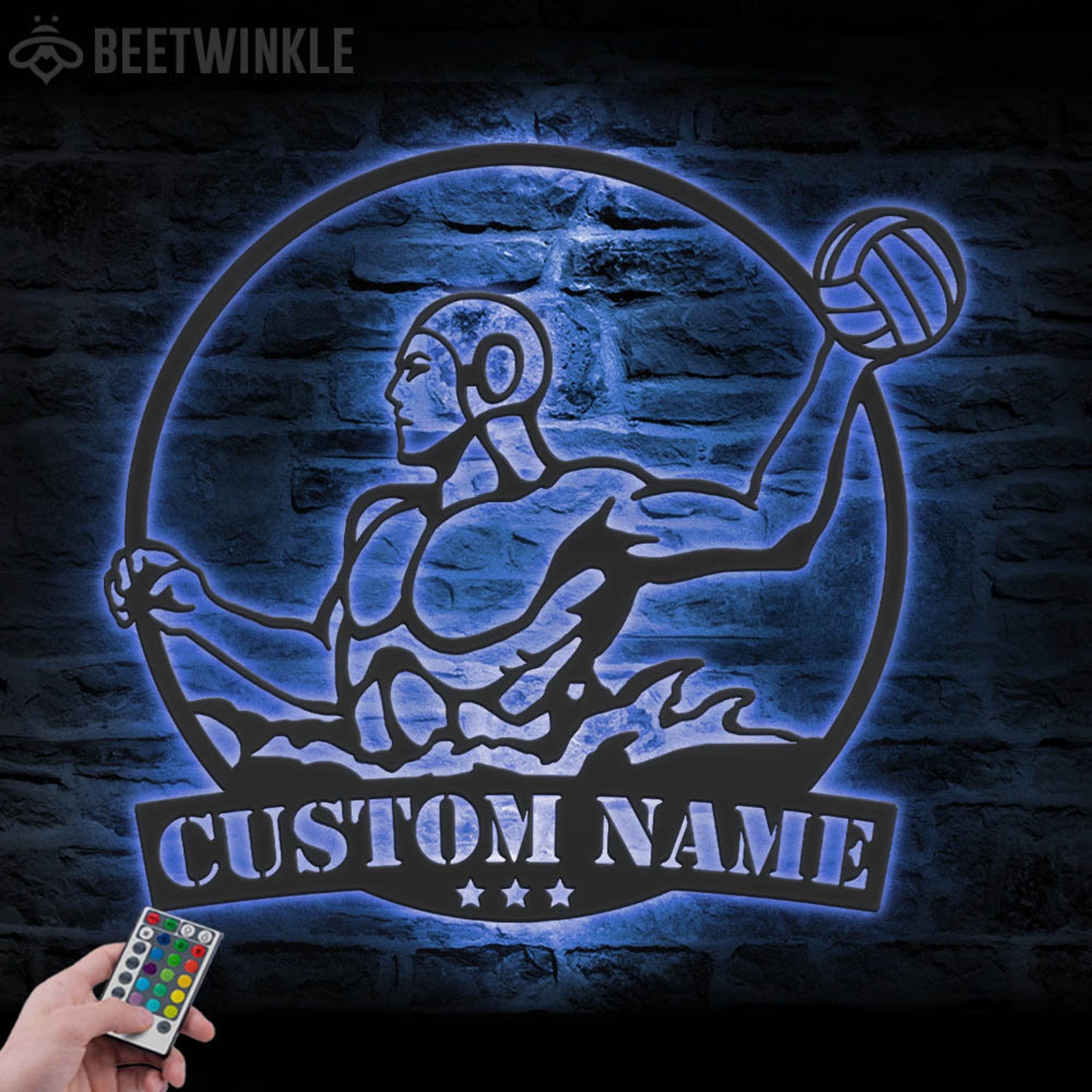 Be the first to review “Custom Man Water Polo Metal Art with LED Light”