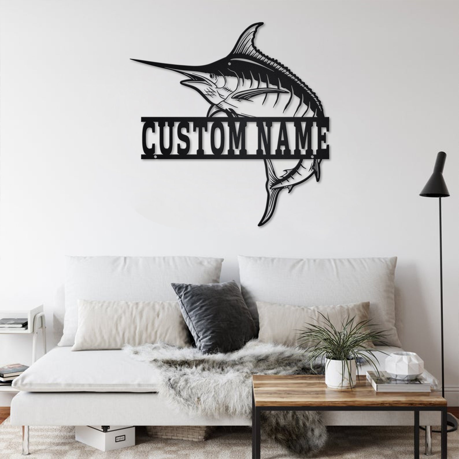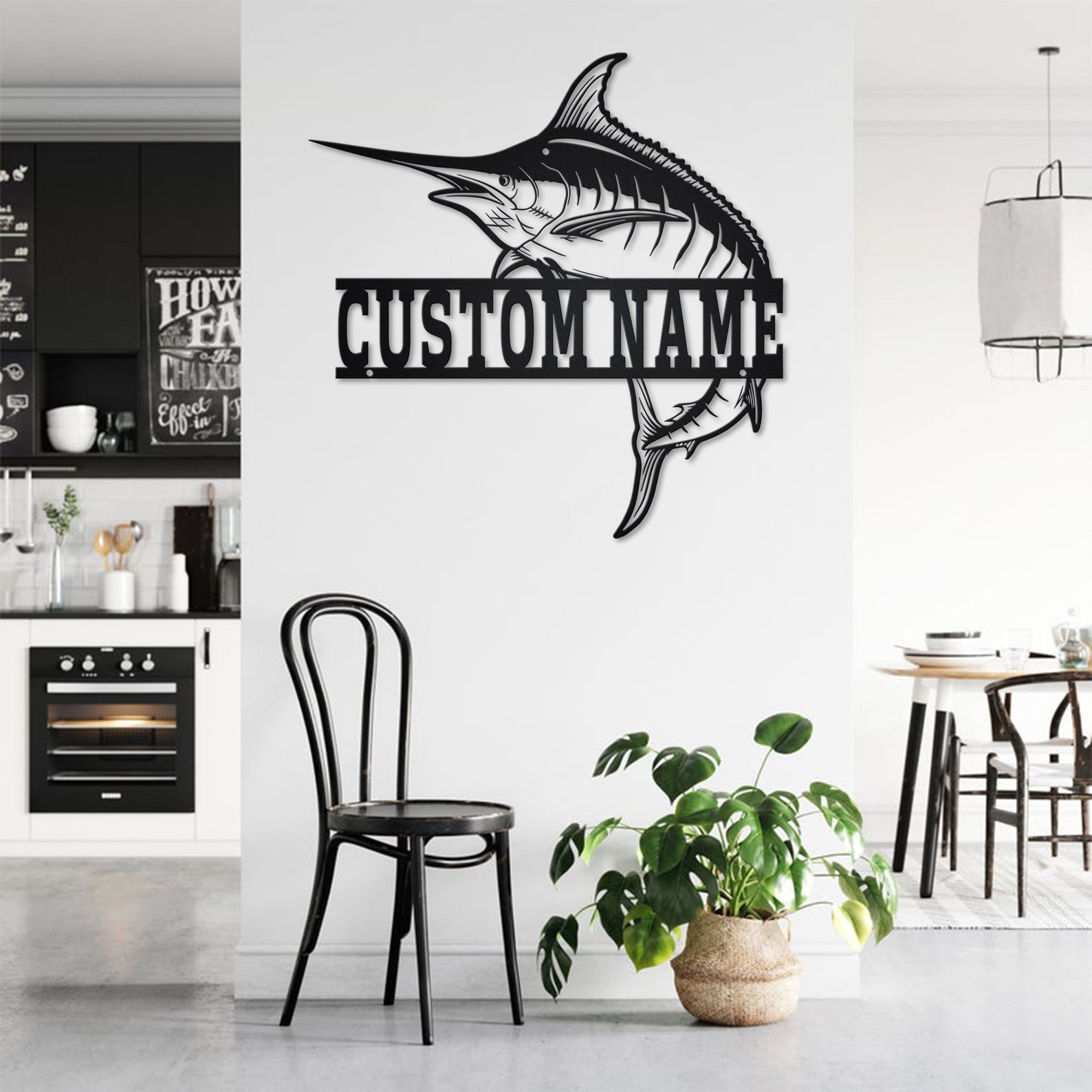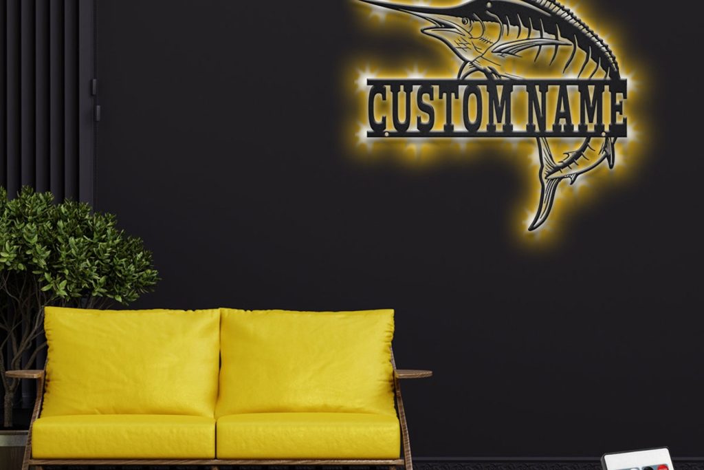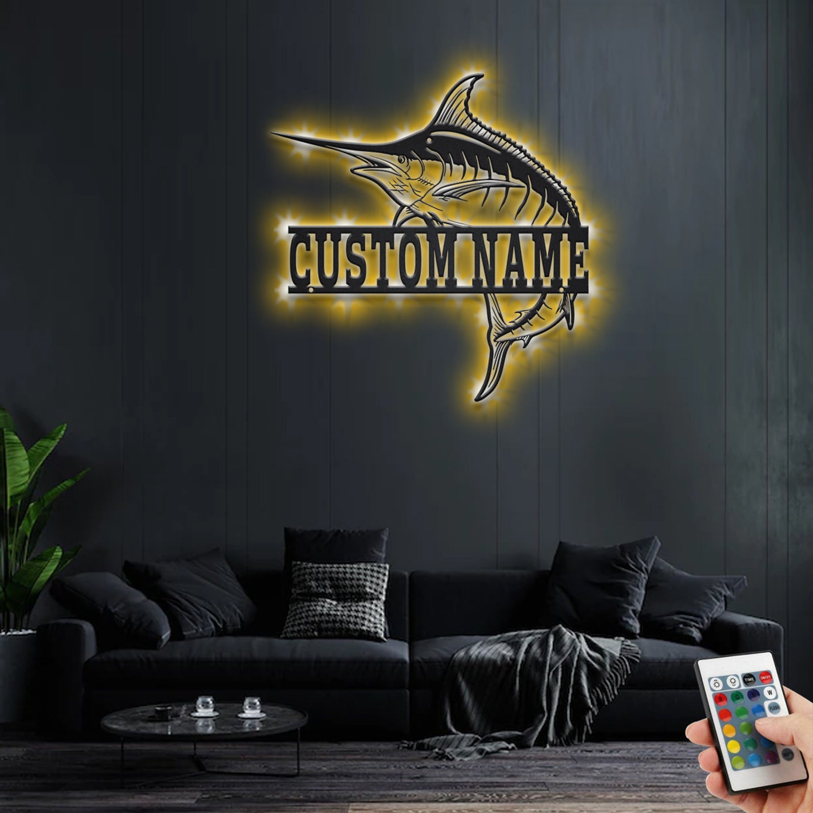 Custom Marlin Fish Metal Wall Art – LED Light, Fishing Decor