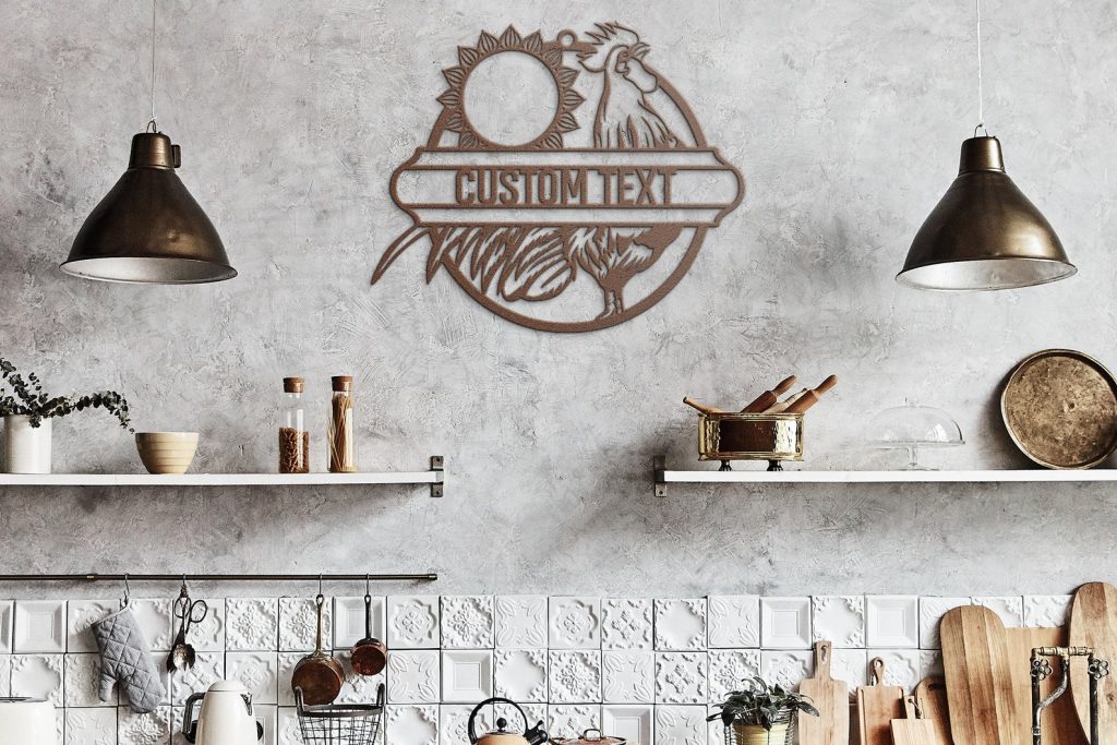 Elevate your home decor with a beautiful custom farm sign featuring your custom name, a rooster, and sun . Made with 18 gauge steel and powder coated in your choice of 5 colors, this custom farm wall art sign is built to withstand the outdoor elements for years of enjoyment.