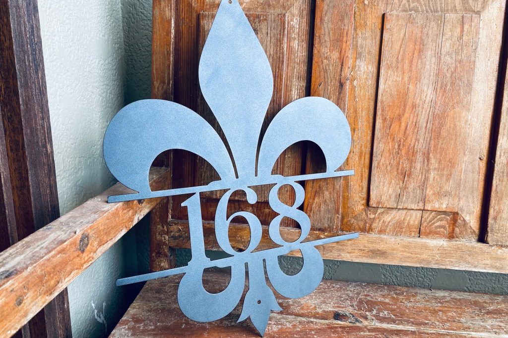 Be the first to review “Custom Metal Home Address Sign – Fleur De Lis House Numbers”