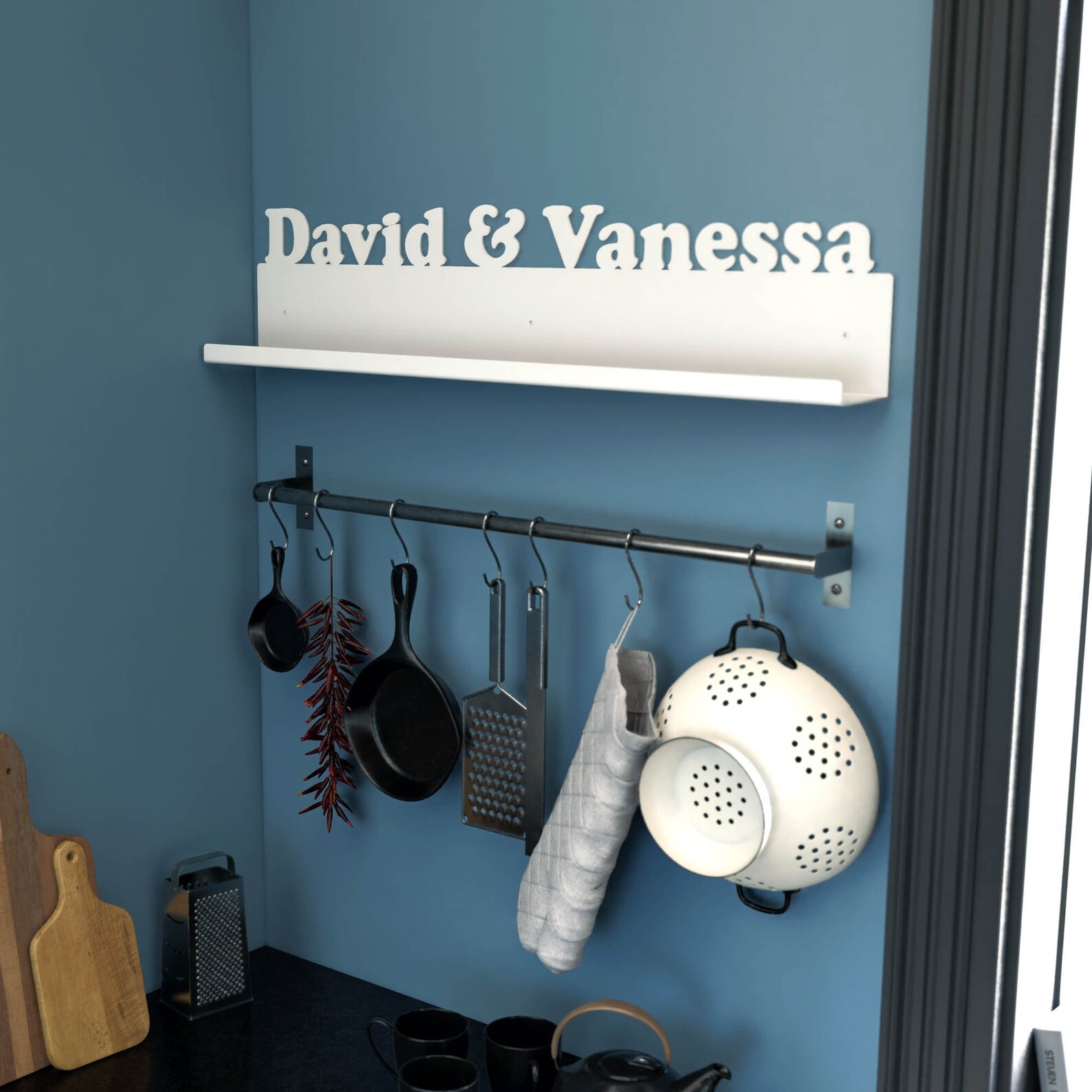 Be the first to review “Custom Metal Name Sign with Shelf – Personalized Family Gift”