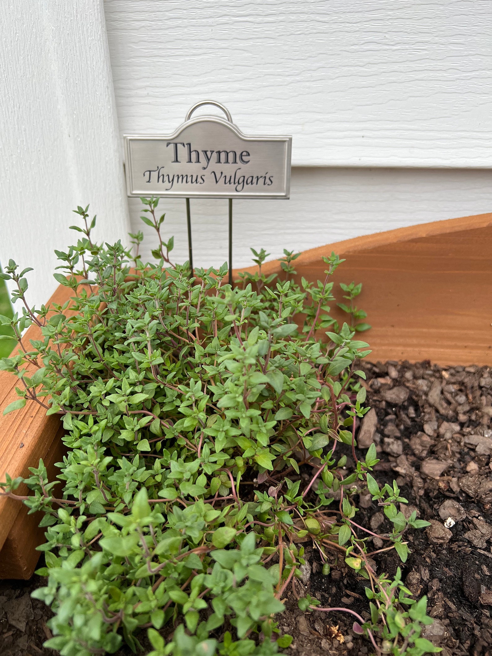 Custom Metal Plant Labels in Stainless Steel. They come in silver and rose gold with laser engraved black lettering. The examples shown have the common name and the latin name, but we can put whatever text you want on the label. The label area is 3.74" x 1.39" and the stakes are 10.25" tall. The label is held at a 25 degree angle to the vertical stake for easy reading. If you have something specific in mind do not hesitate to message us!