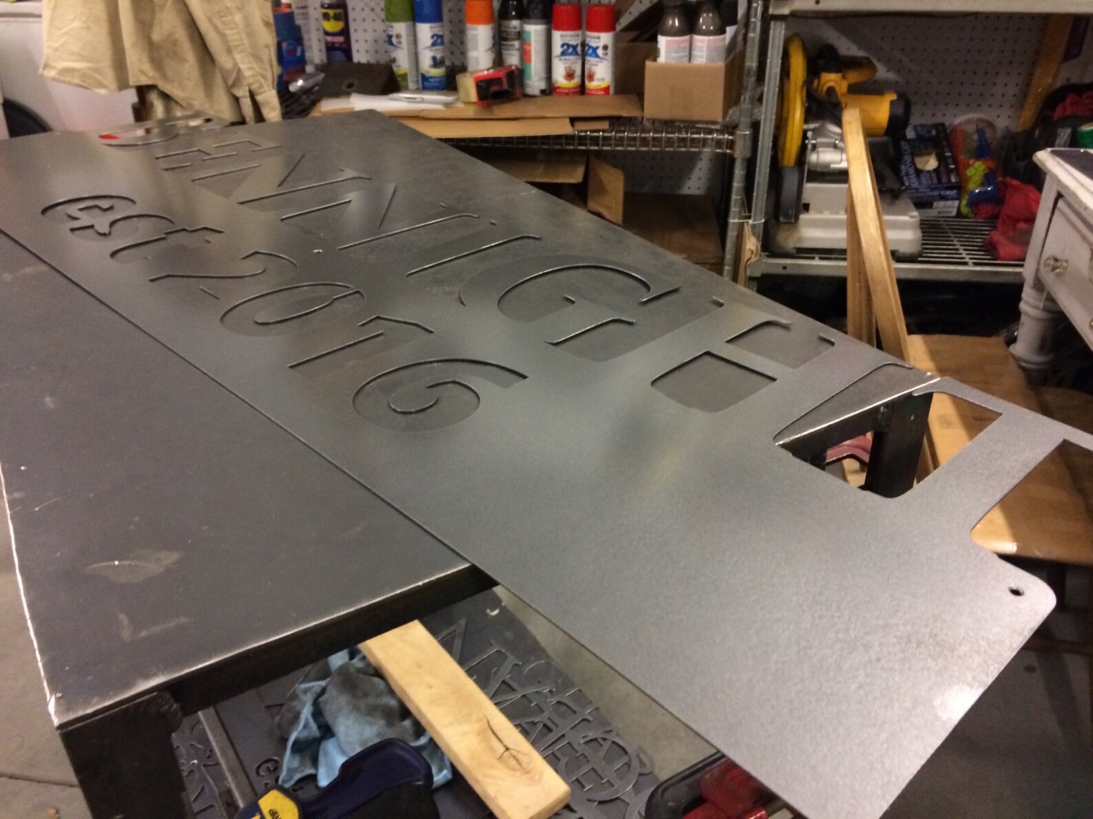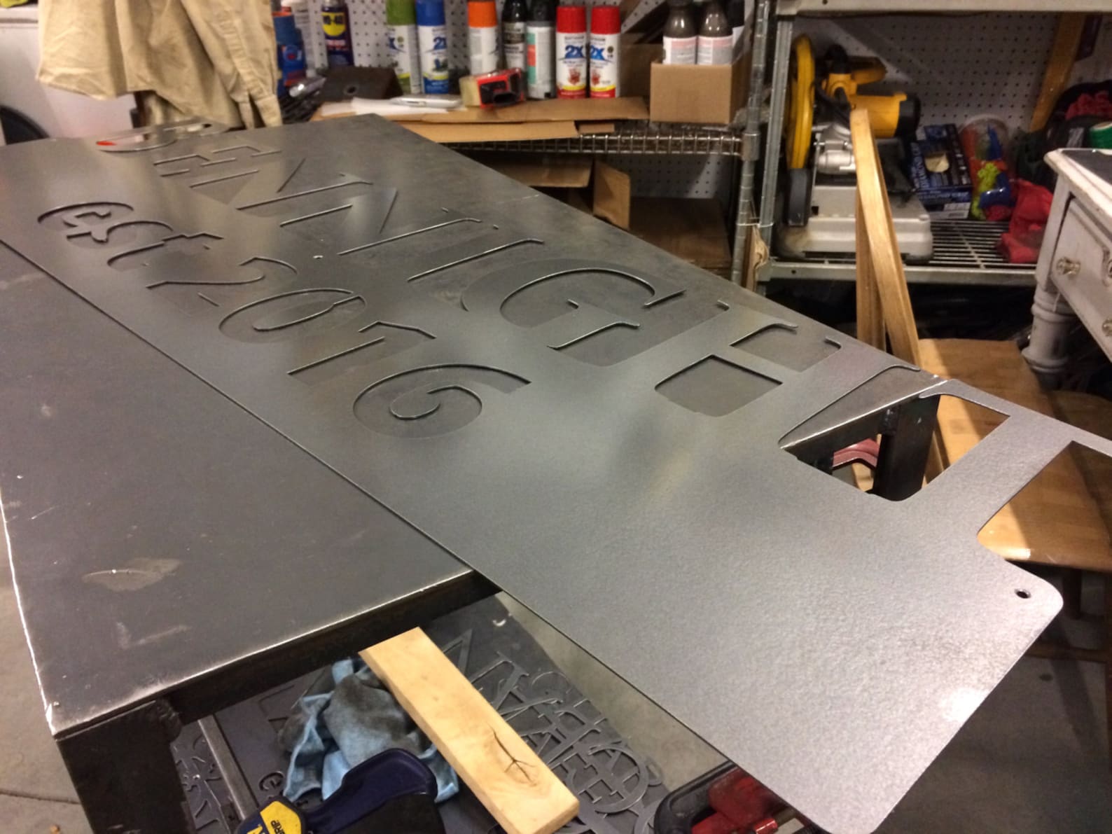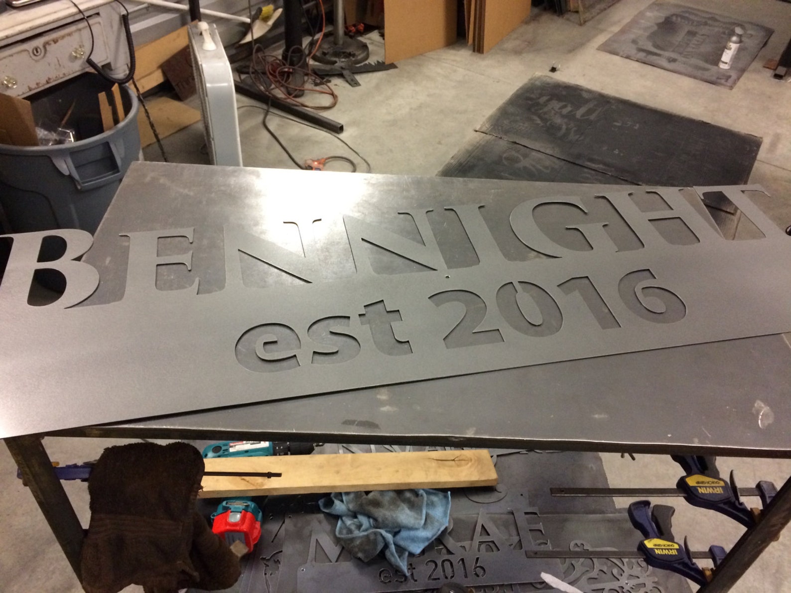 This personalized metal sign is a perfect addition to your home, office, shop, or garage! This product is great to hang near your front entrance, inside your home, on your door or patio, in your man cave, and many more places. Items pictured are hot rolled steel and clear coated. This is a great gift for family and friends.