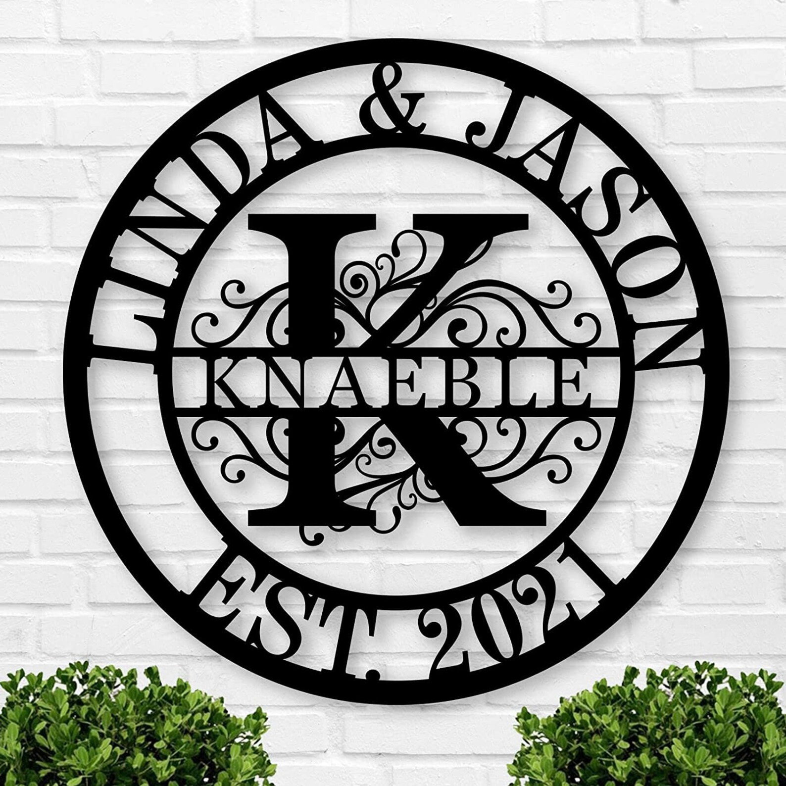 INDOOR or OUTDOOR DECOR — Upgrade your garage, shed or beautify the walls with this metal name signs. This customized metal sign can be used for workshop, garage, tool shed and more. Display your familys initials in or around your home. There are six sizes of signs for you to choose, you can choose the proper size according to the hanging position.