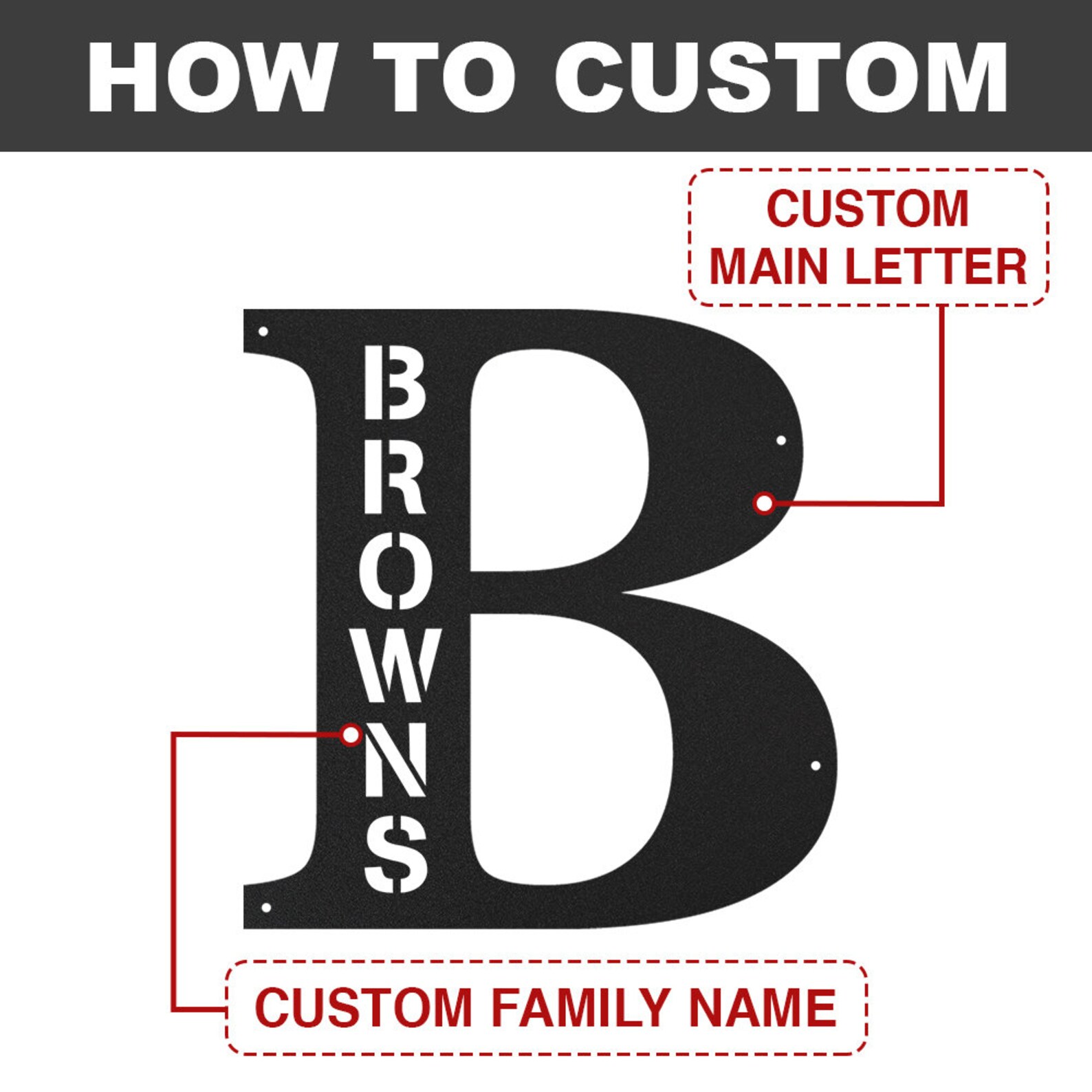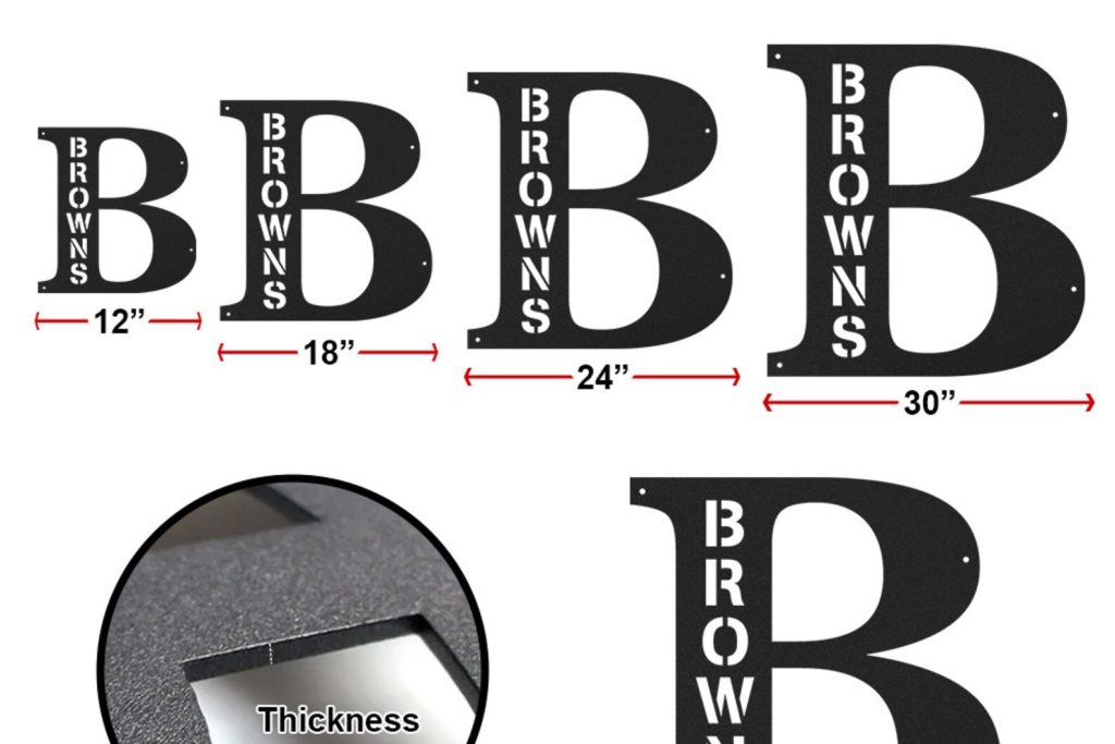 INDOOR or OUTDOOR DECOR — Upgrade your garage, shed or beautify the walls with this metal name signs. This customized metal sign can be used for workshop, garage, tool shed and more. Display your familys initials in or around your home. There are six sizes of signs for you to choose, you can choose the proper size according to the hanging position.
