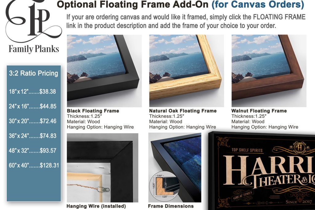 Optional Floating Frame for all canvas orders