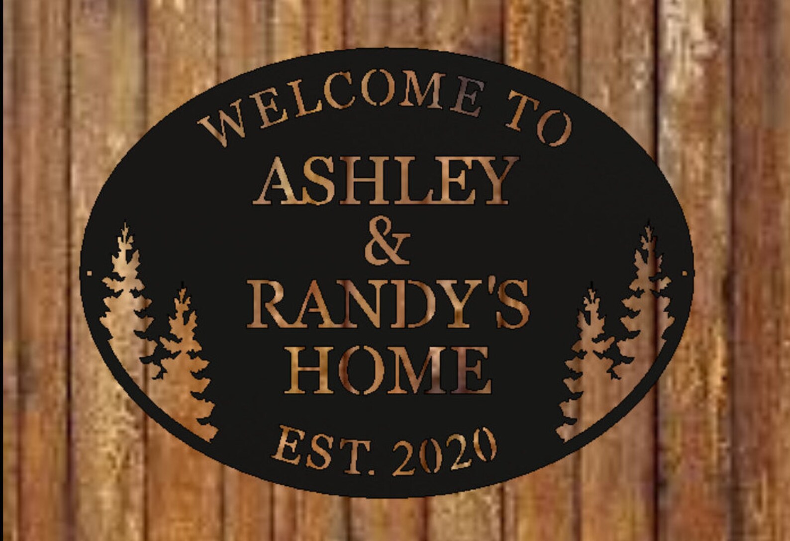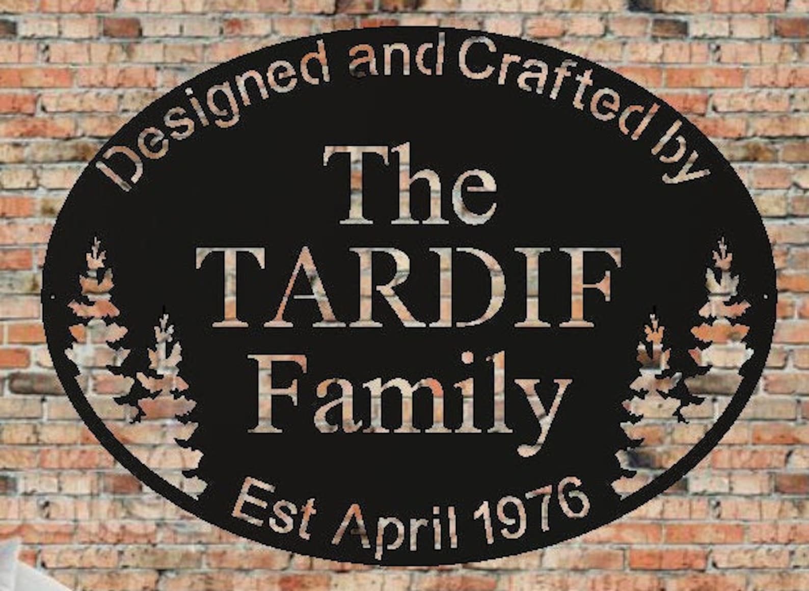 Our custom Tree Sign is a personalized piece that can be hung either inside your home or outside.