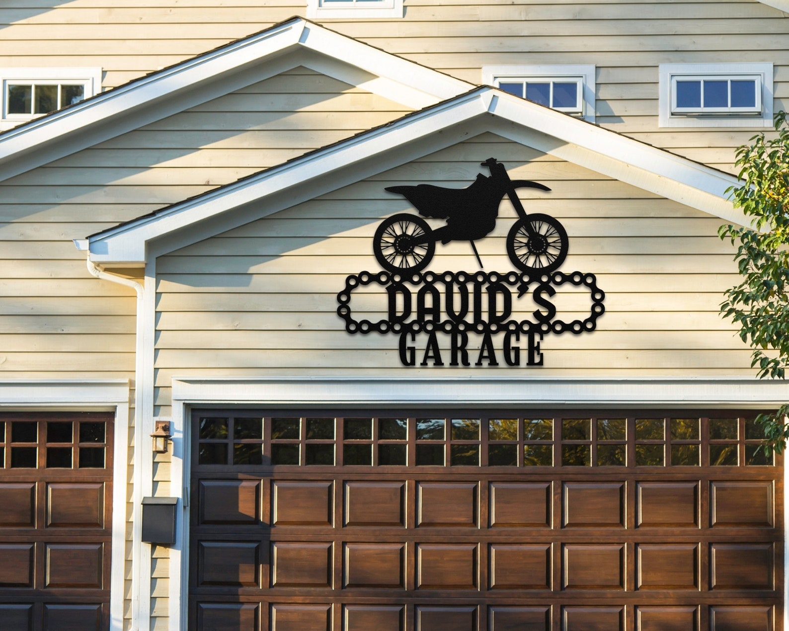 Add a unique touch to your garage or workshop with this Custom Motorcycle Metal Sign. This personalized biker name sign is the perfect addition to any Harley enthusiast9;s space, making it a great housewarming gift. Constructed with high-quality metal, this durable sign is designed to last for years to come. Showcase your love for motorcycles and personalize your space with this one-of-a-kind garage sign.