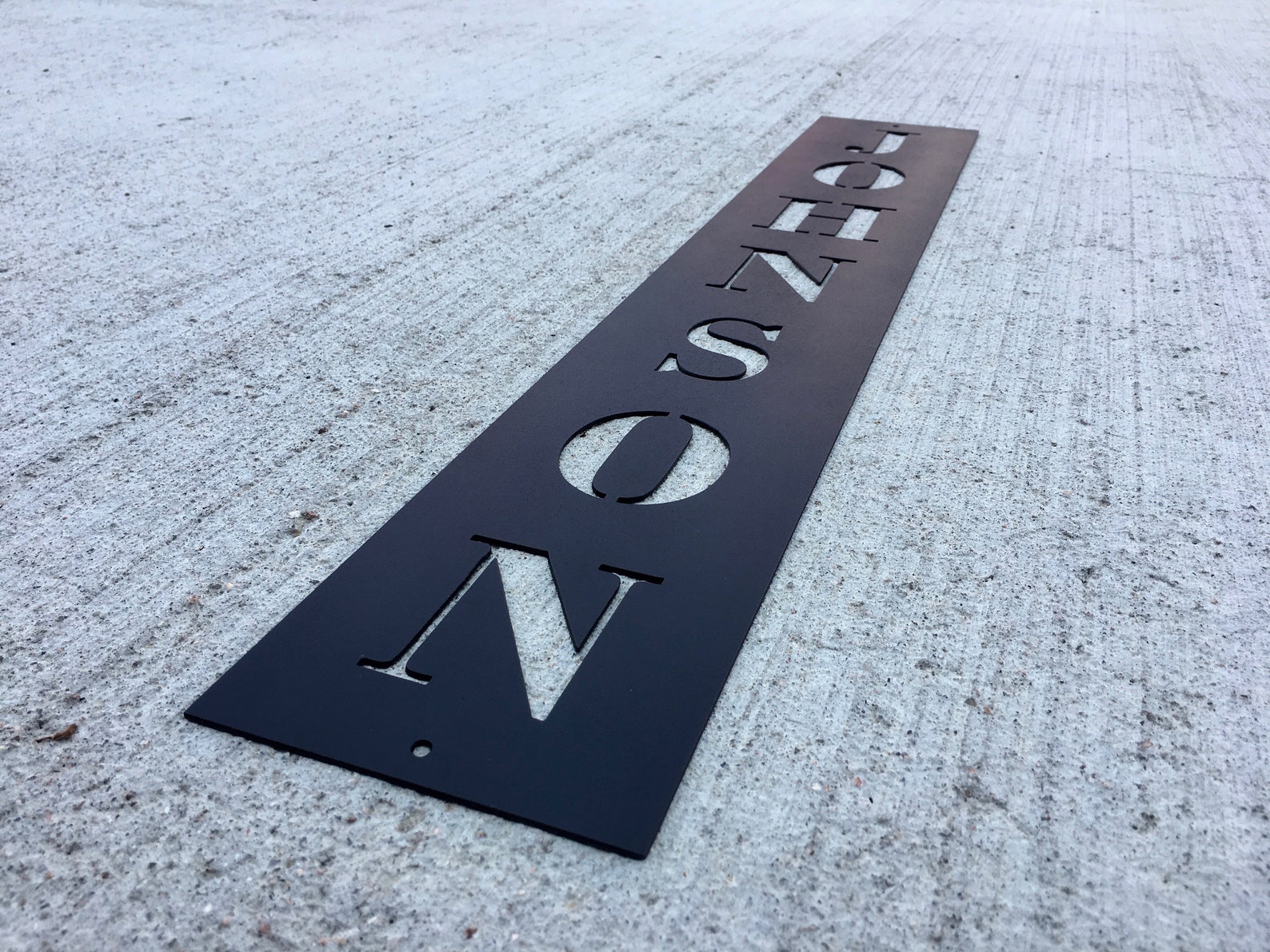 This custom metal name sign has a modern look, predrilled holes for easy installation, and made from sturdy, 16 gauge steel. This product is personalized with your name (or a dear friend or relative!) and will make a great addition to any household be it indoors or out!