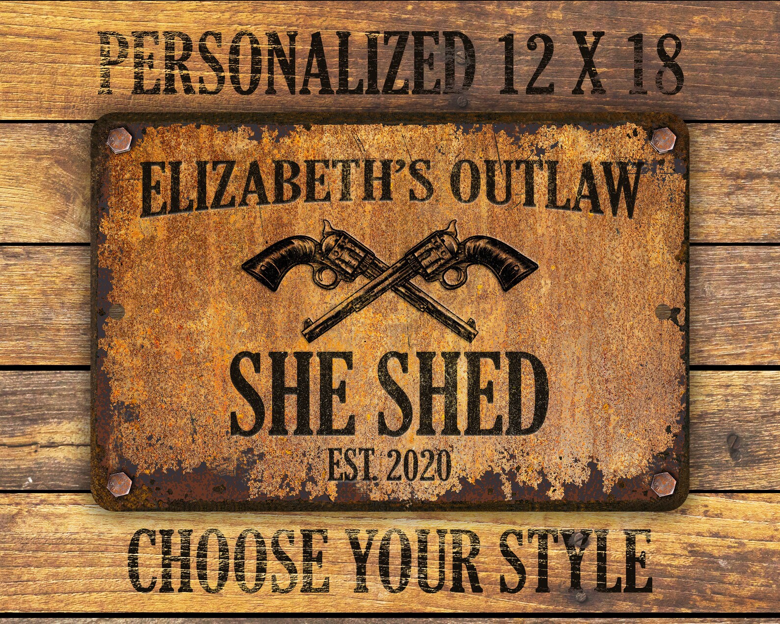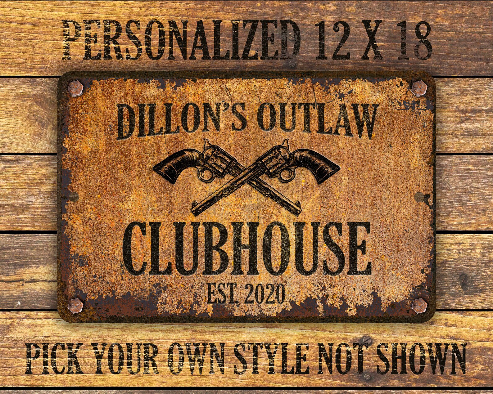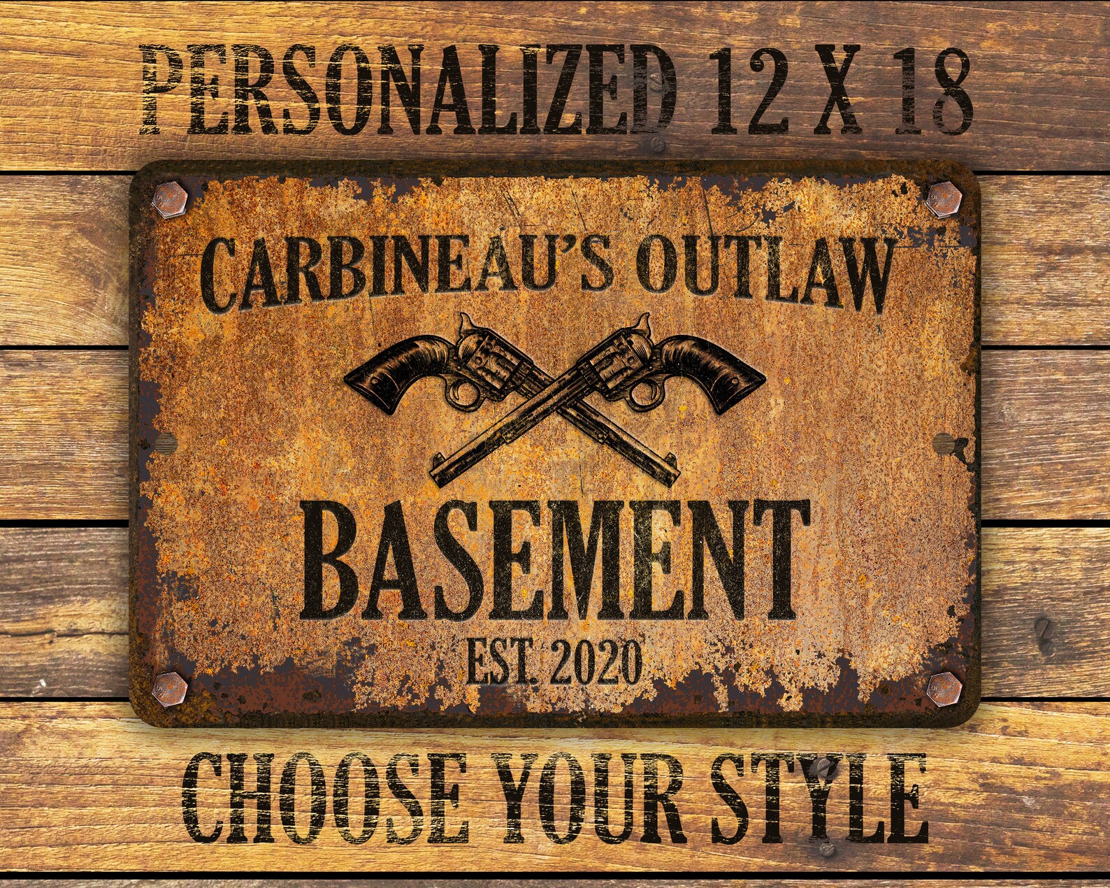 Custom rusty appearance outlaw-themed metal sign | Perfect gift for anyone who needs their own special sign with vintage appeal | Customize this sign with first name, family name, bar or shop name | Includes plenty of options to tailor the sign to commemorate your special place.