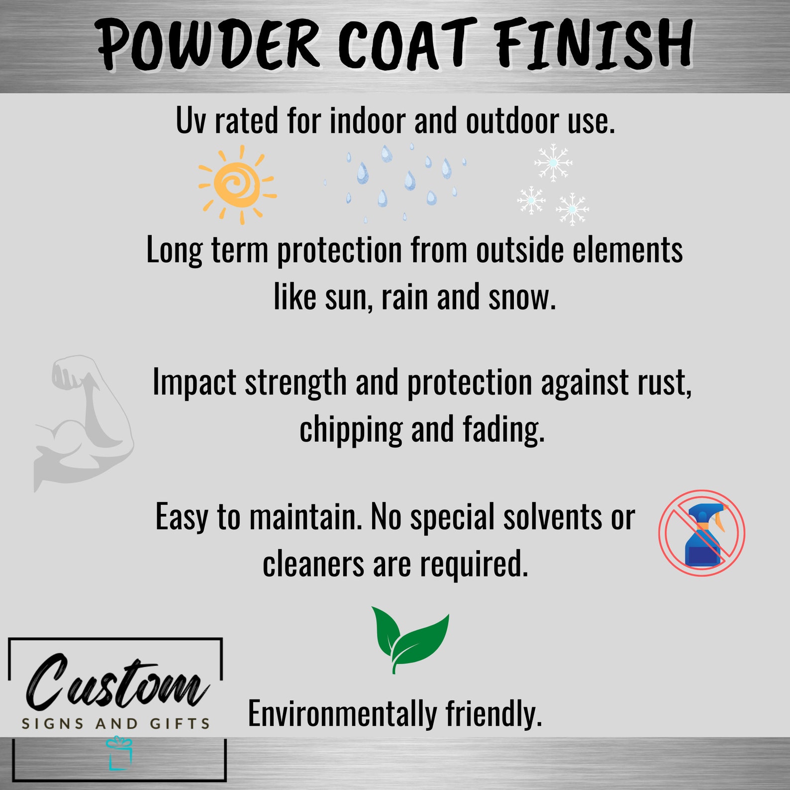 Available in multiple powder coat colors. Our powder coat is UV rated for added weather protection from rusting, chipping and the outside elements like sun, rain and snow.