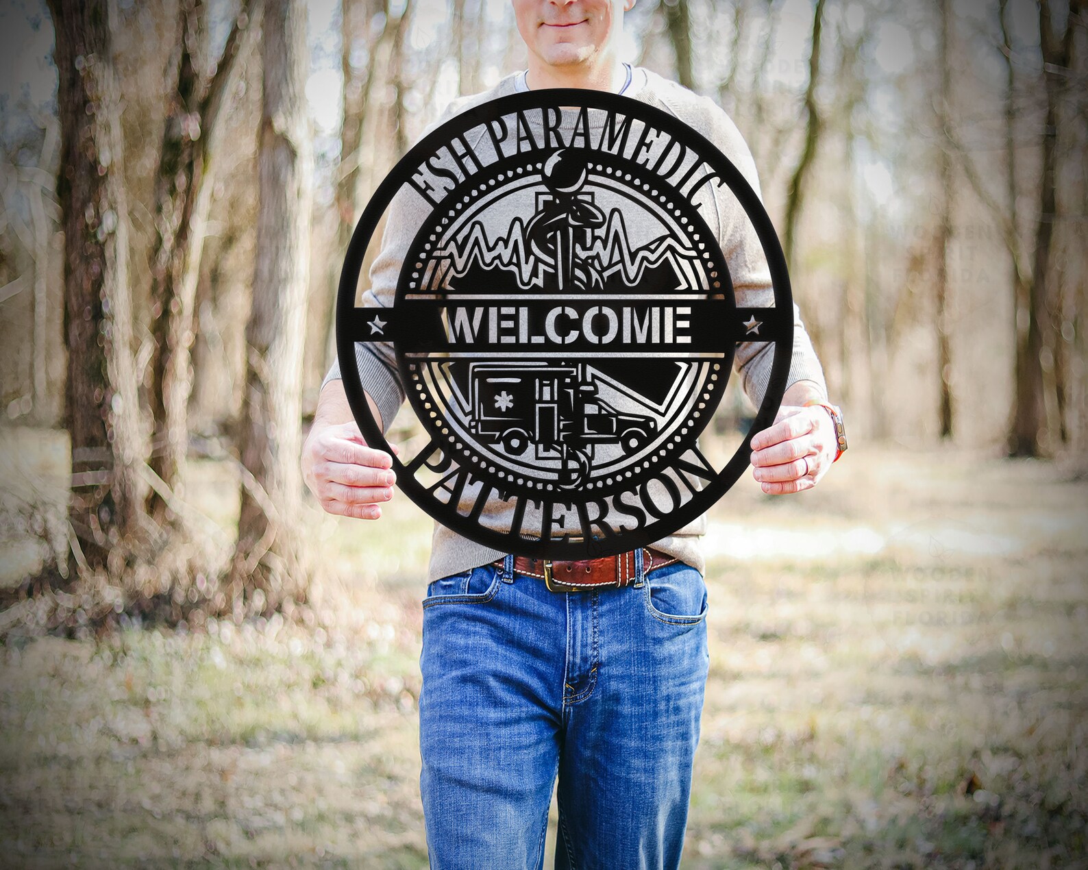 Custom Paramedic Wall Art – Personalized EMS Decor Sign, Last Name Metal Monogram Gift