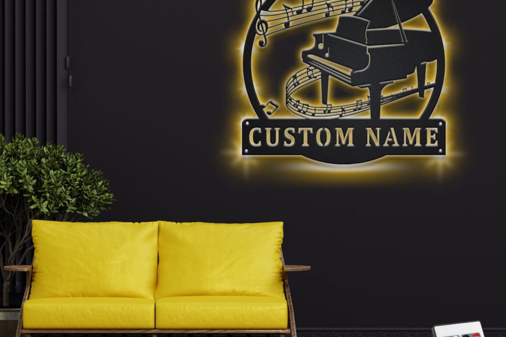 Custom Piano Metal Sign with LED – Pianist Room Decoration