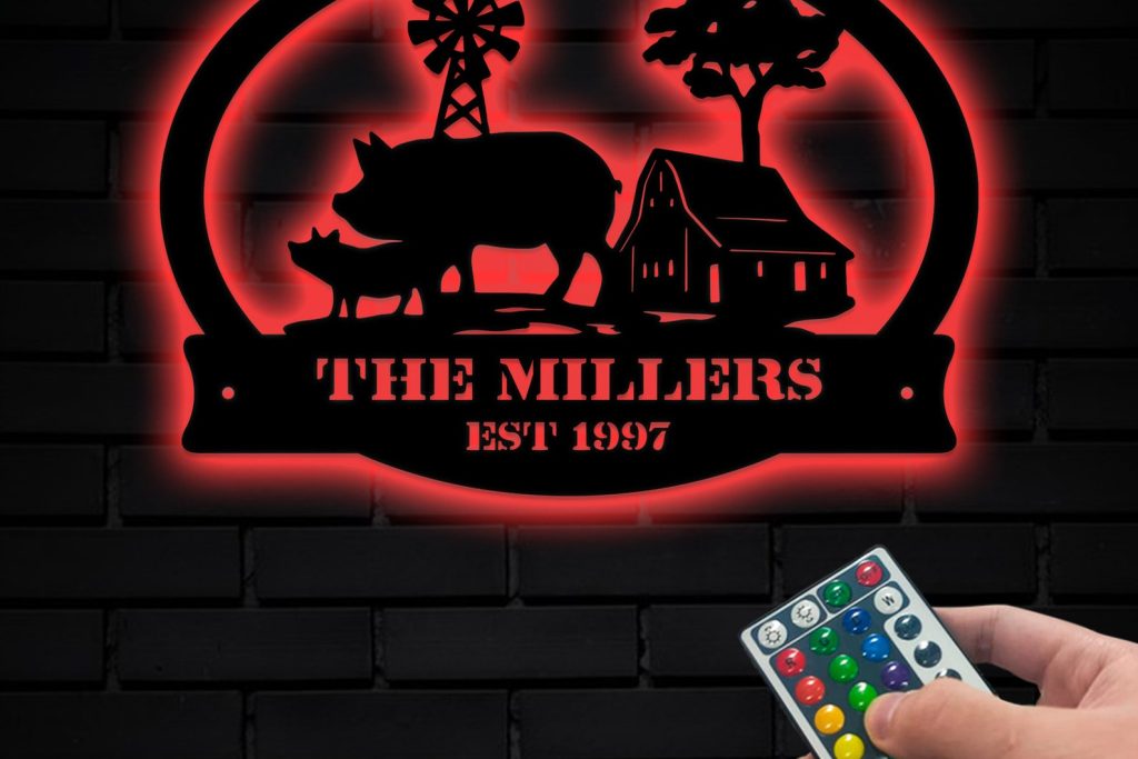 Be the first to review “Custom Pig Farm Metal Sign with LED – Barn Wall Decor”