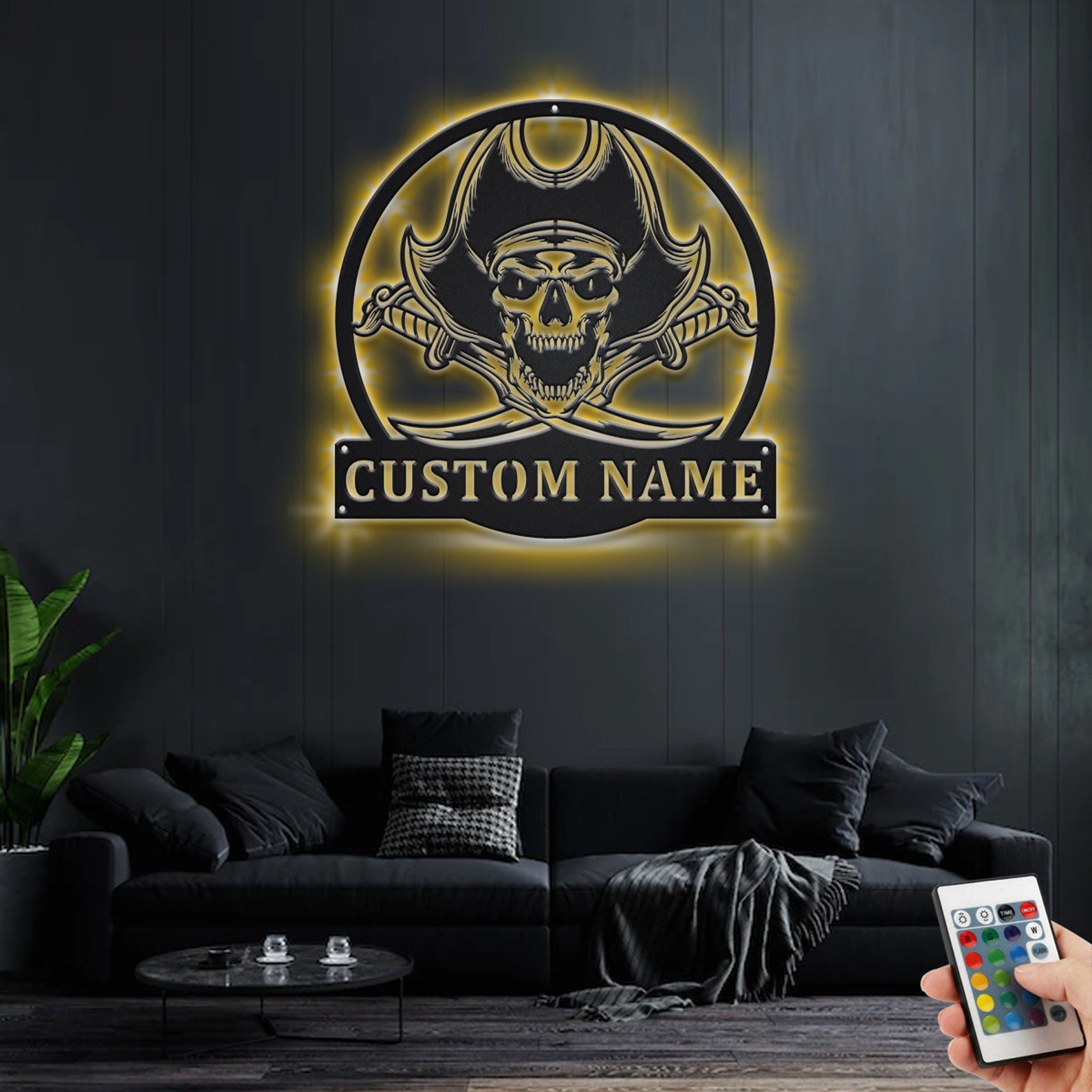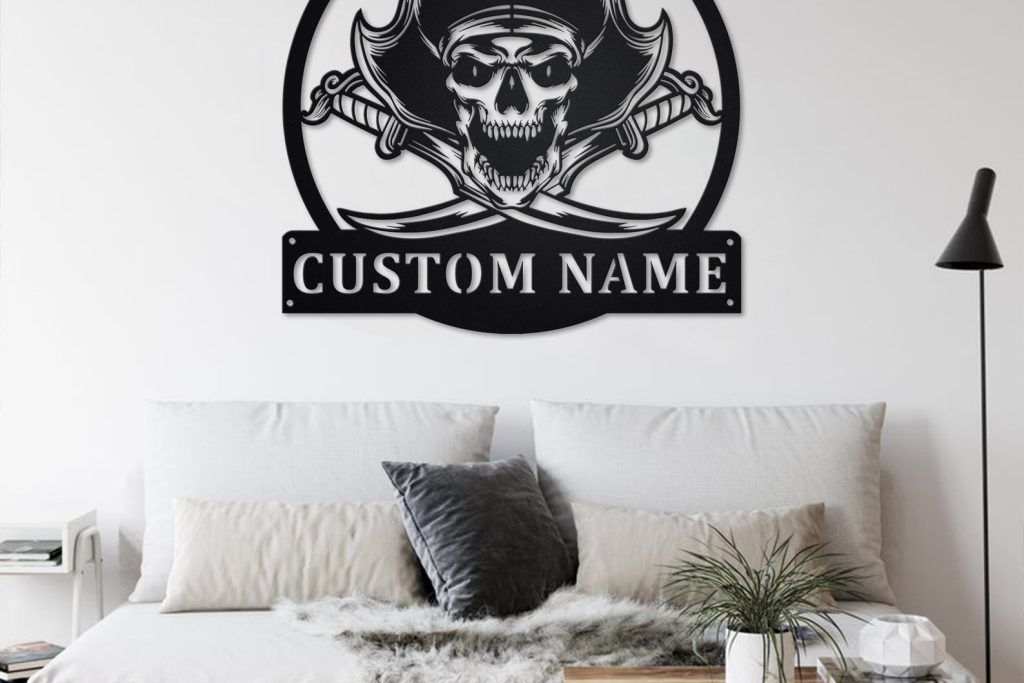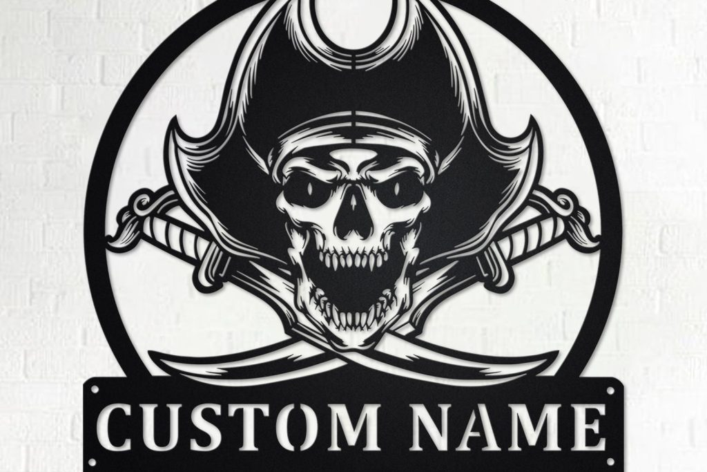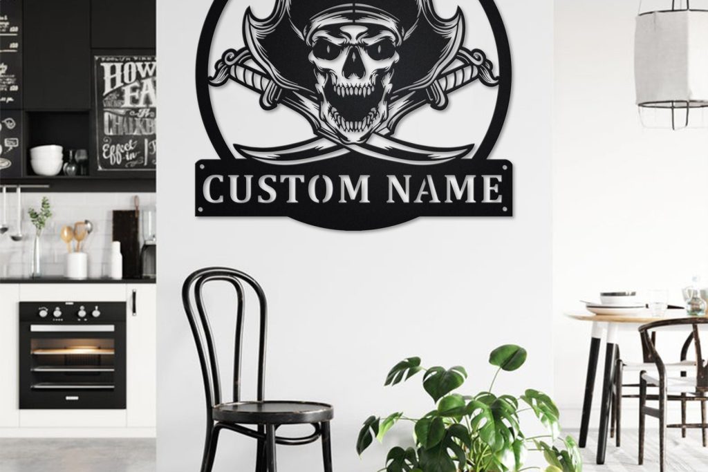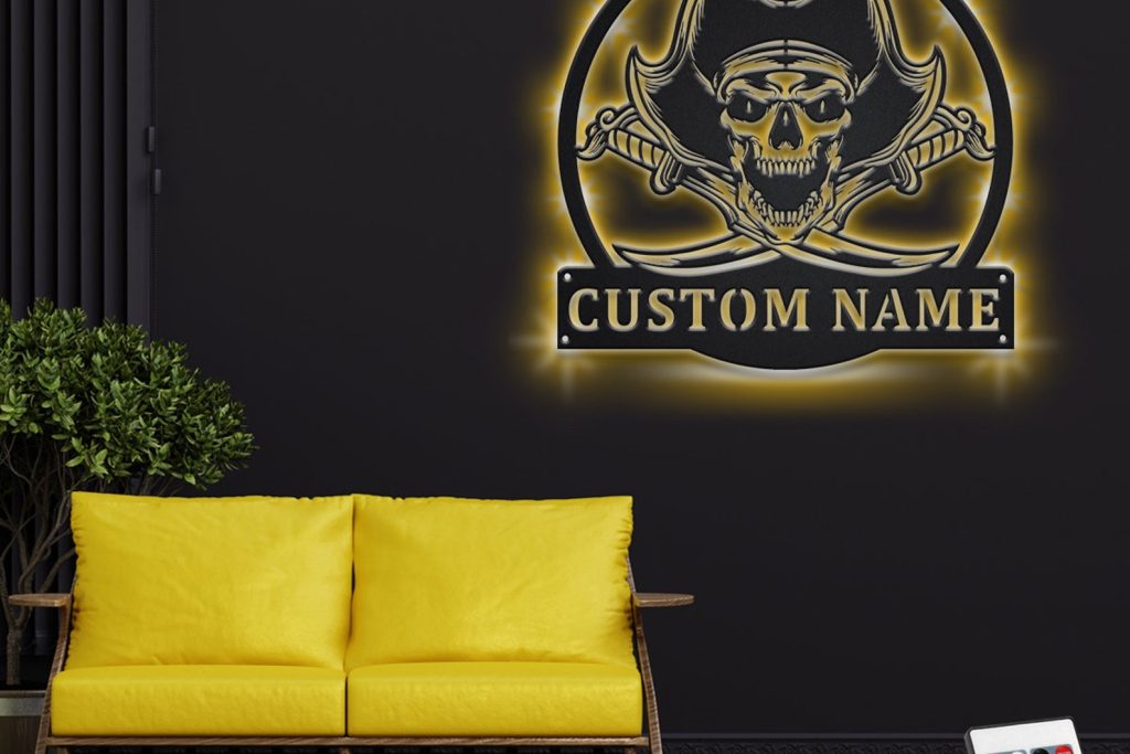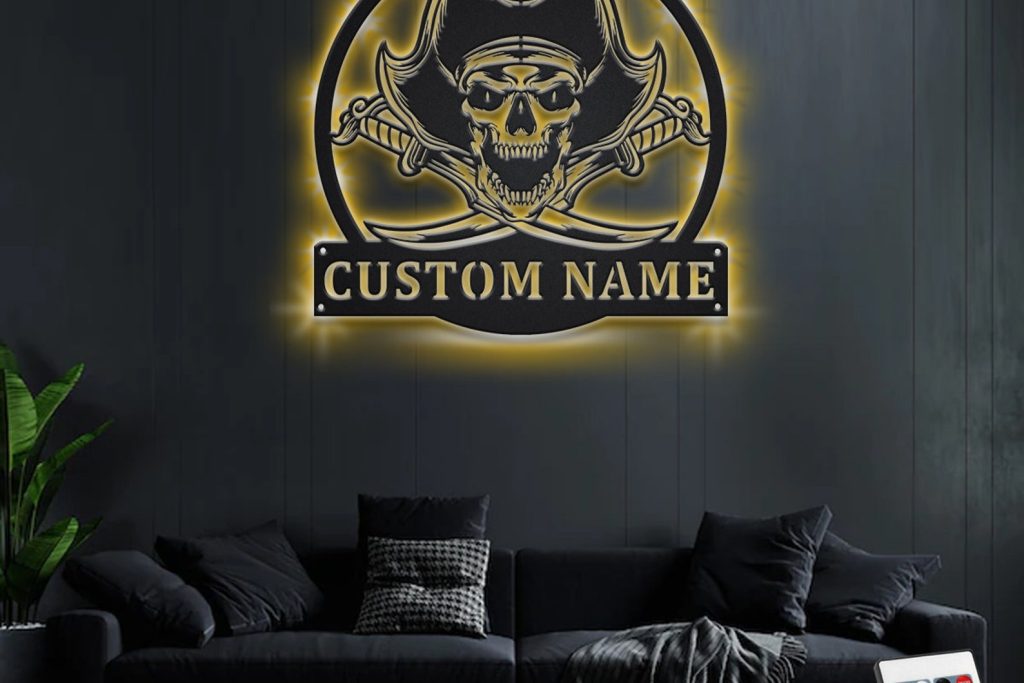 Custom Pirate Skull Metal Sign with LED V2 – Ship Decor