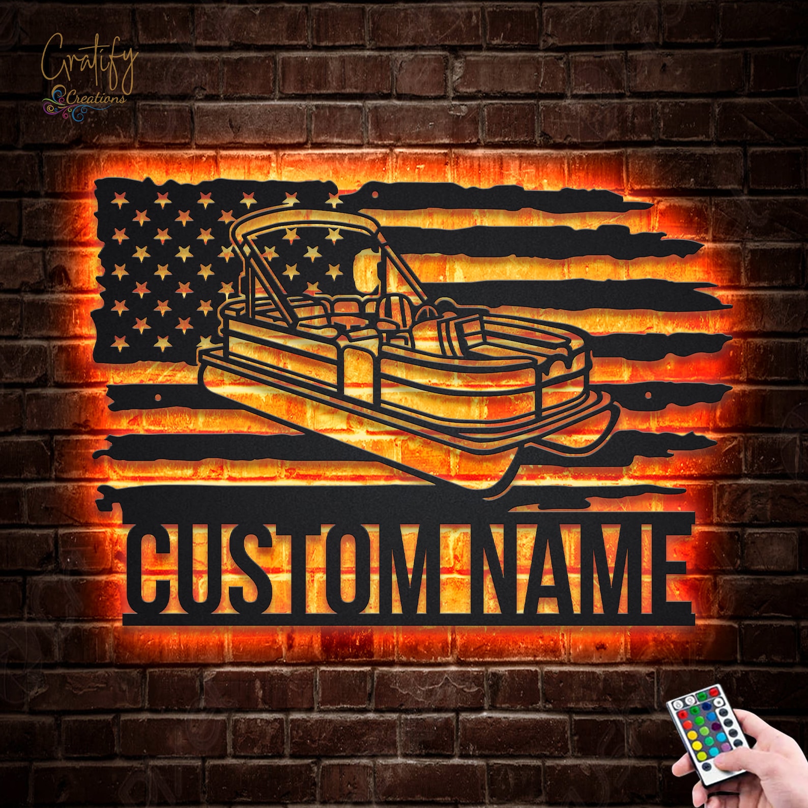 Be the first to review “Custom Pontoon Boat Metal Sign with LED Lights V11”