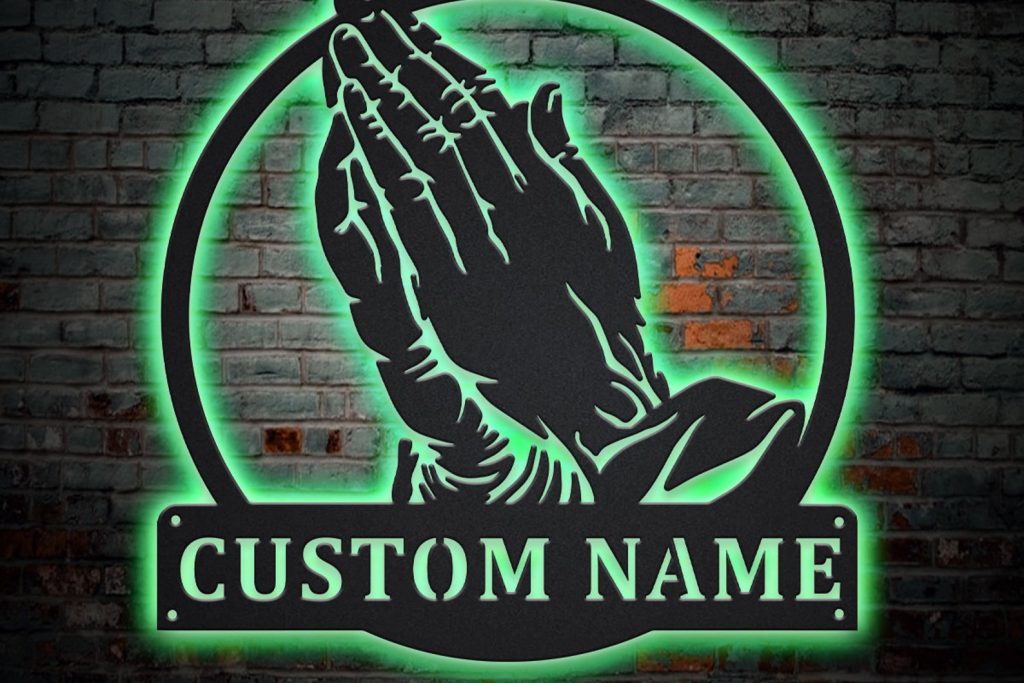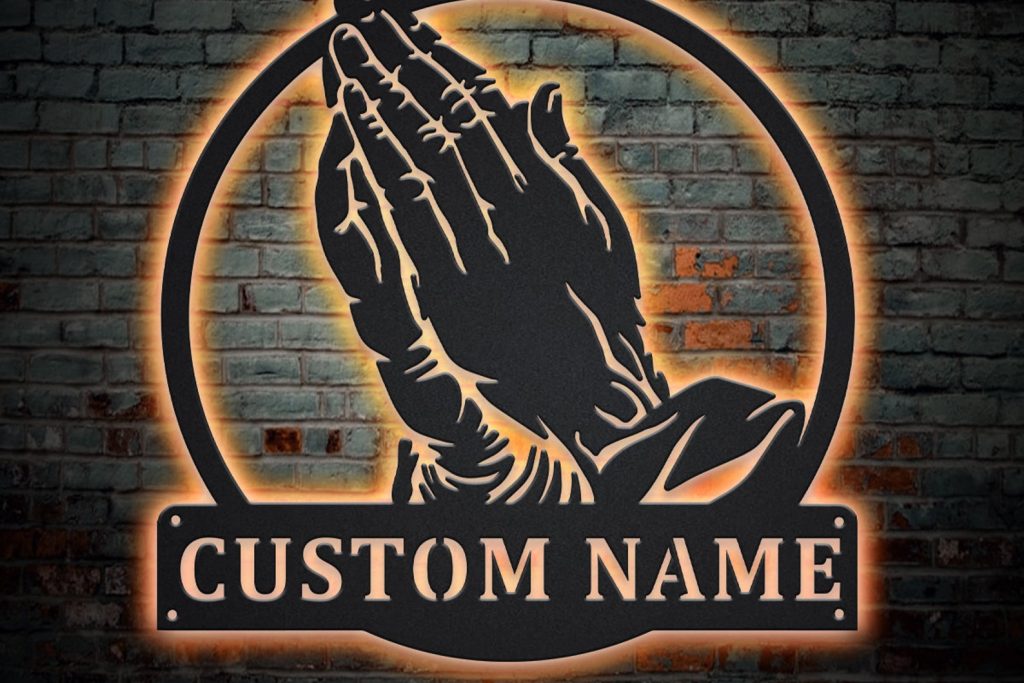 Be the first to review “Custom Praying Hands Metal Sign with LED V5 – Christmas Gift”
