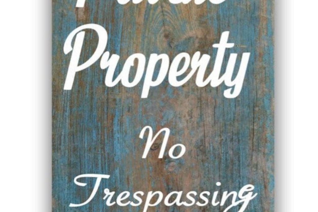 Private Property No Trespassing -choose from 3 backgrounds – Barn wood, Grey Wood, White Crackle- wood style backgrounds – Metal Sign Door Plaque – (Note not actual wood so smooth and safe to the touch)