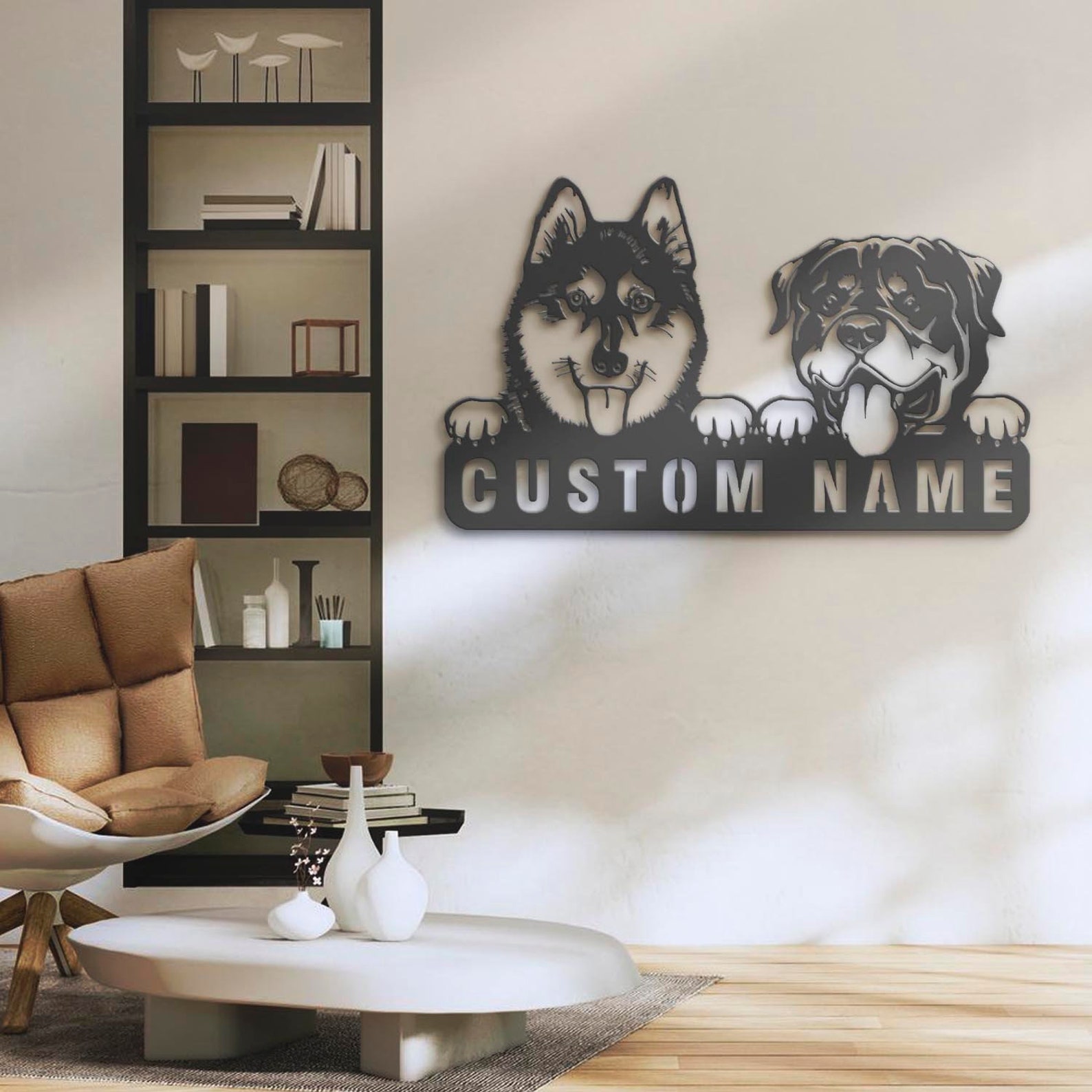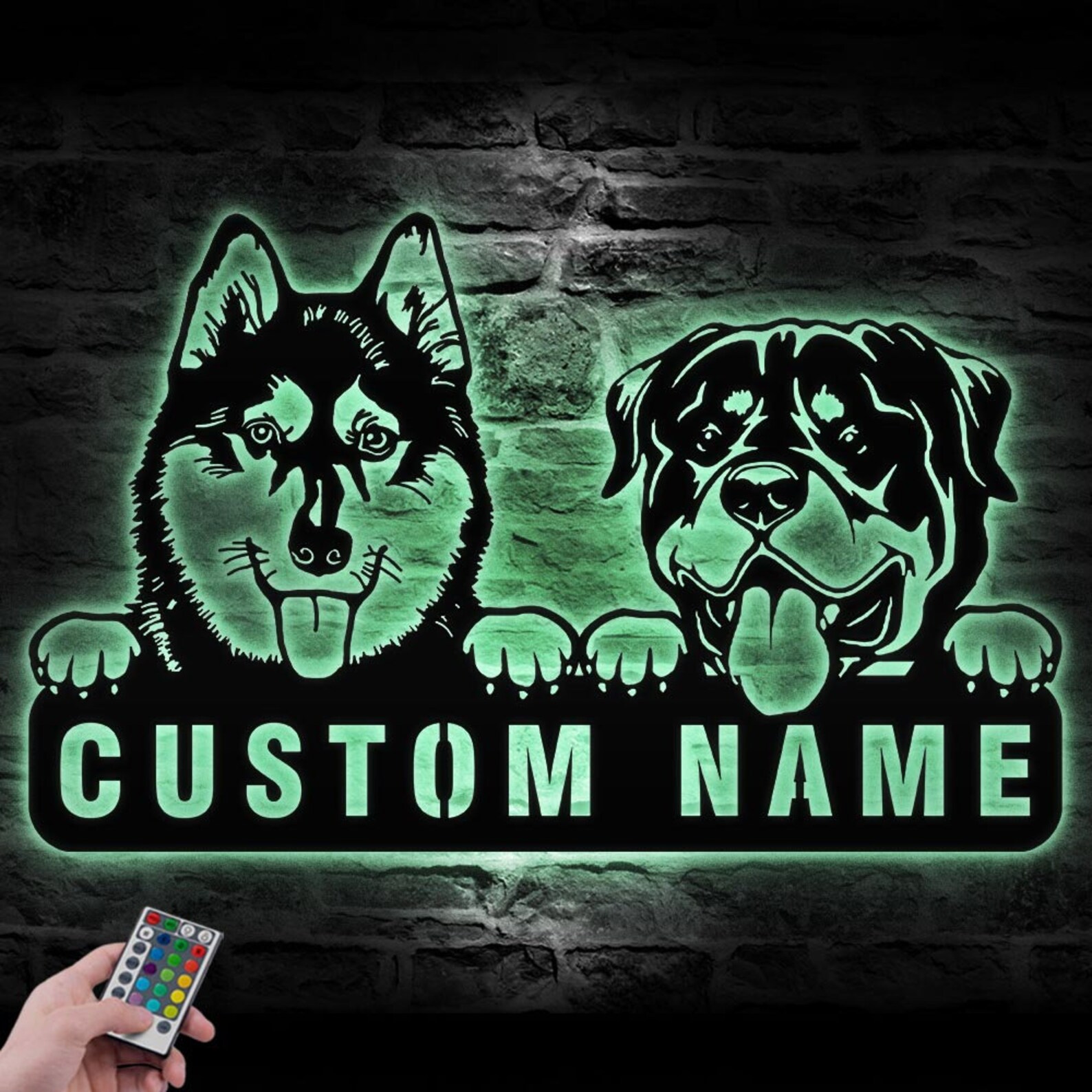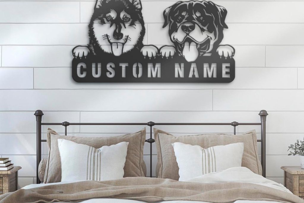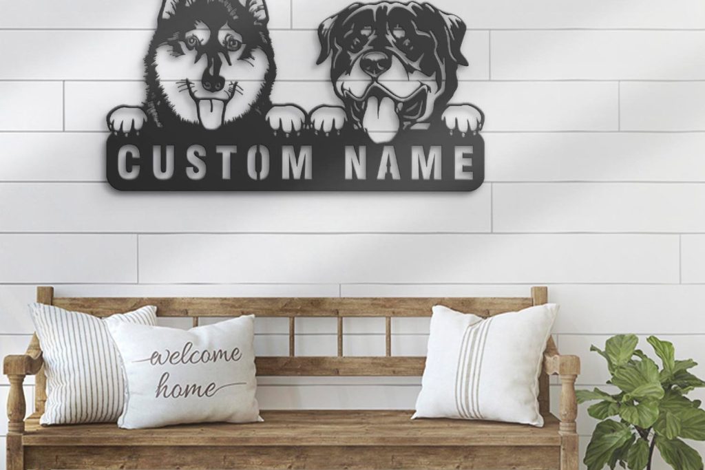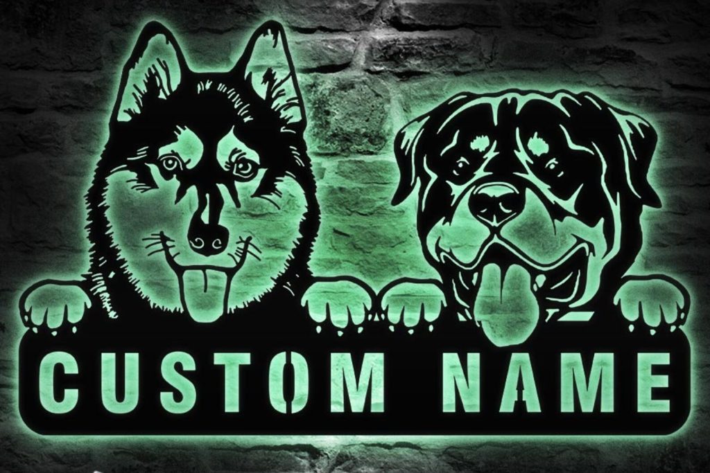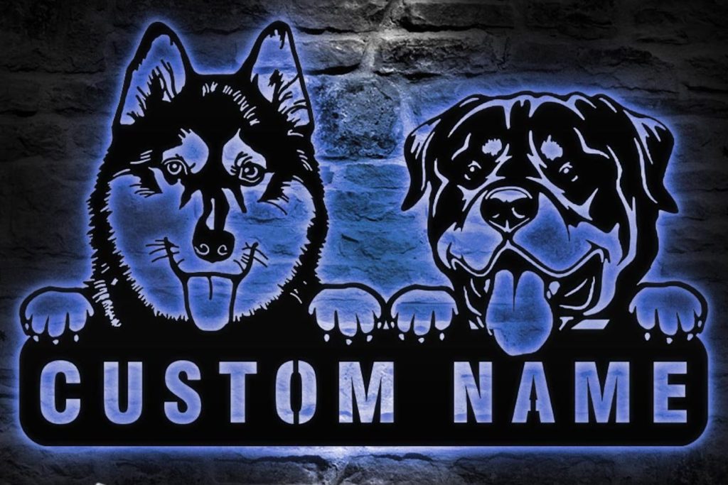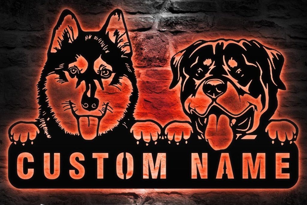 Be the first to review “Custom Rottweiler & Husky Metal Sign with LED – Nursery Decor”