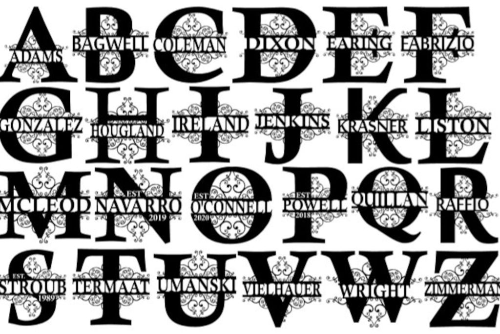 Personalized Monogram Initial with Last Name Metal Wall Art with Scrolls, Weatherproof