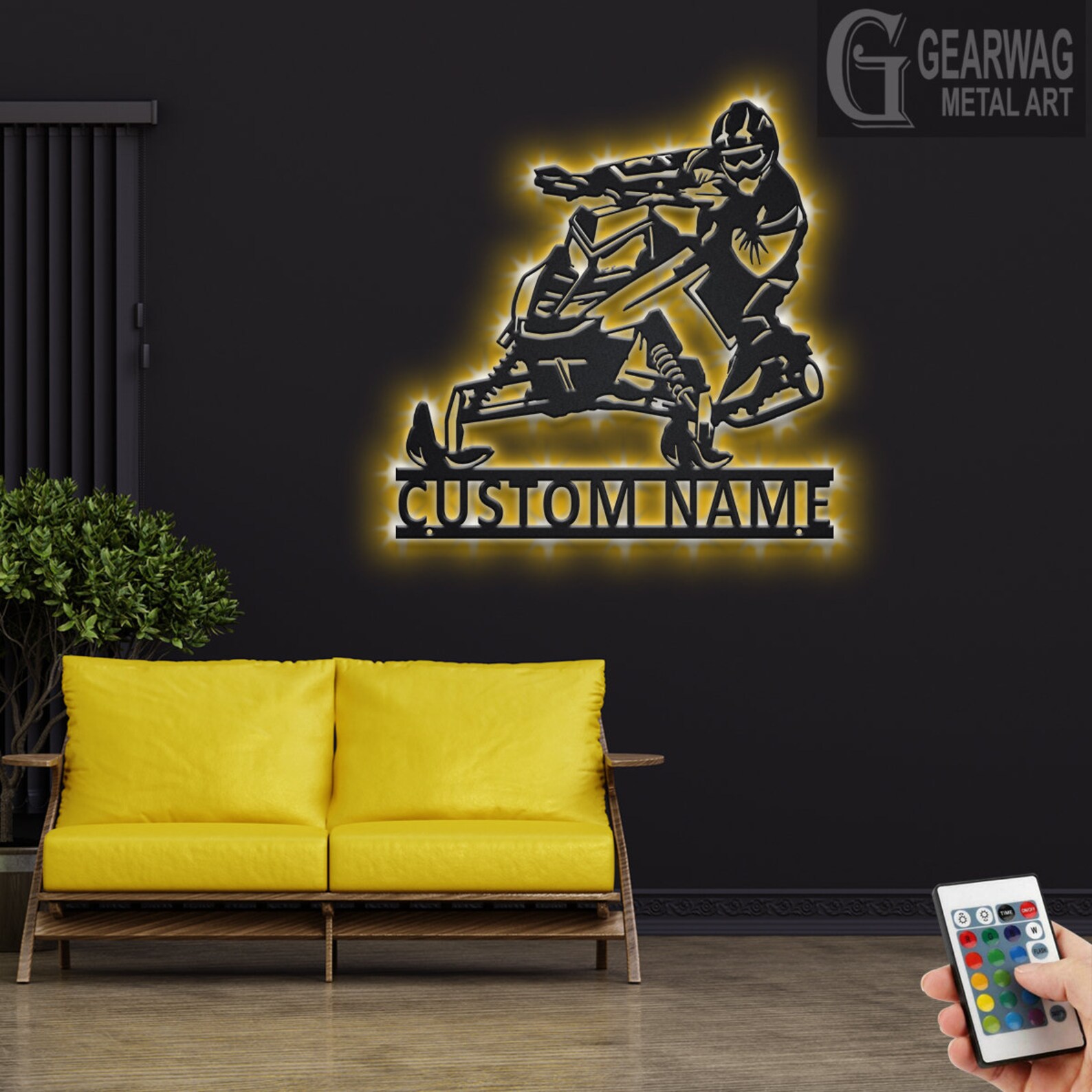 Custom Snowmobile Metal Art with LED, Personalized Sign