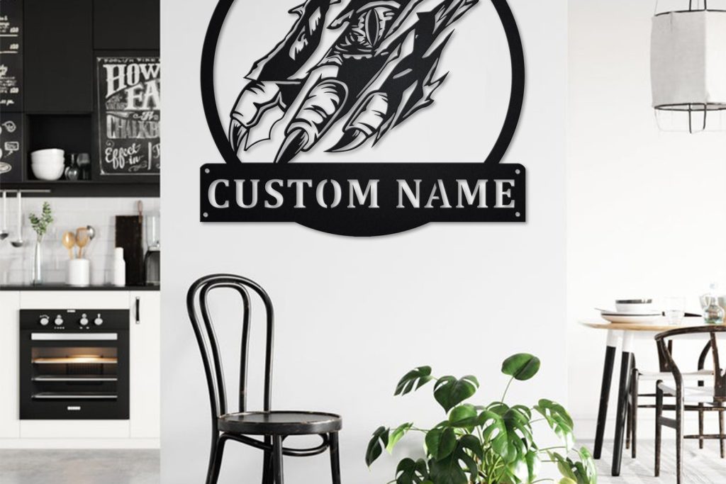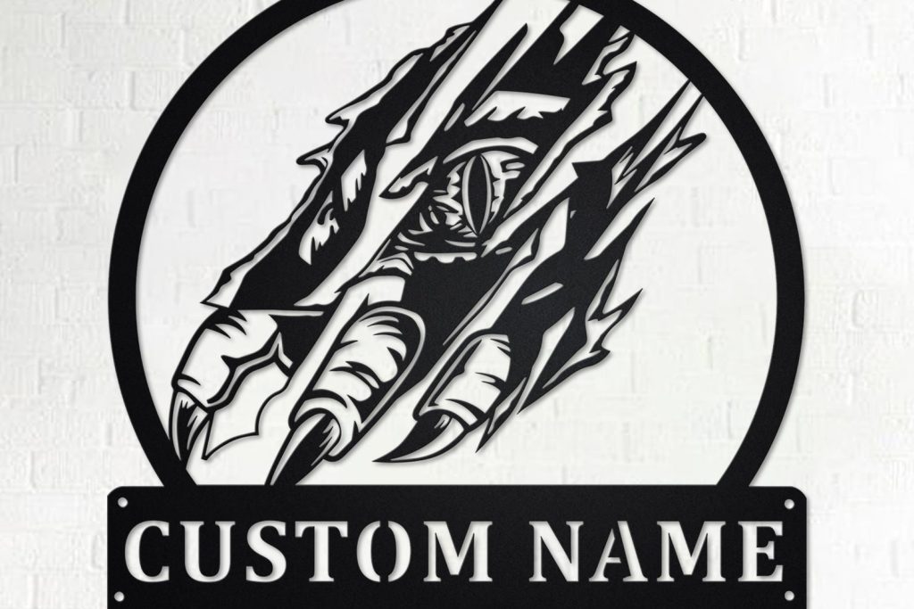 Custom T-Rex Eye Scratch Metal Wall Art with LED Light