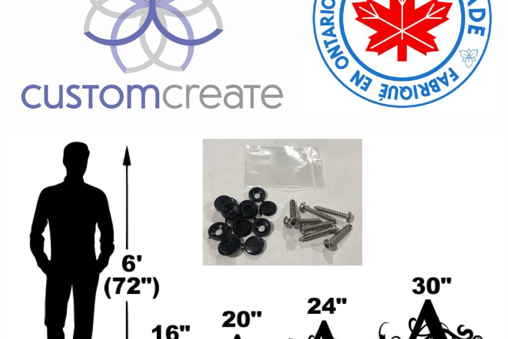 All of our metal signs are Unique Custom Create from our industry-leading CNC fibre laser. The detail and quality is second to none. We make all of our signs from 14 gauge steel and we spend additional time on the preparation process to assure the perfect cosmetic and durable powder coat paint process is applied. We also provide screws and decorative caps on signs 20" and above, making the installation process as easy as possible. Signs smaller than 20" in size, holes are provided approximately 1/8" diameter in same location shown.
