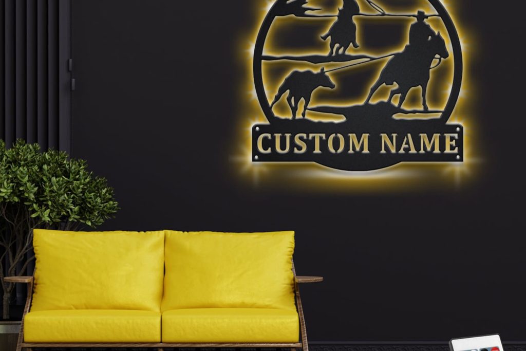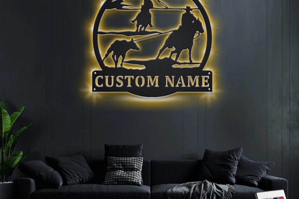 Custom Team Roper Metal Sign with LED – Cowboy Room Decor
