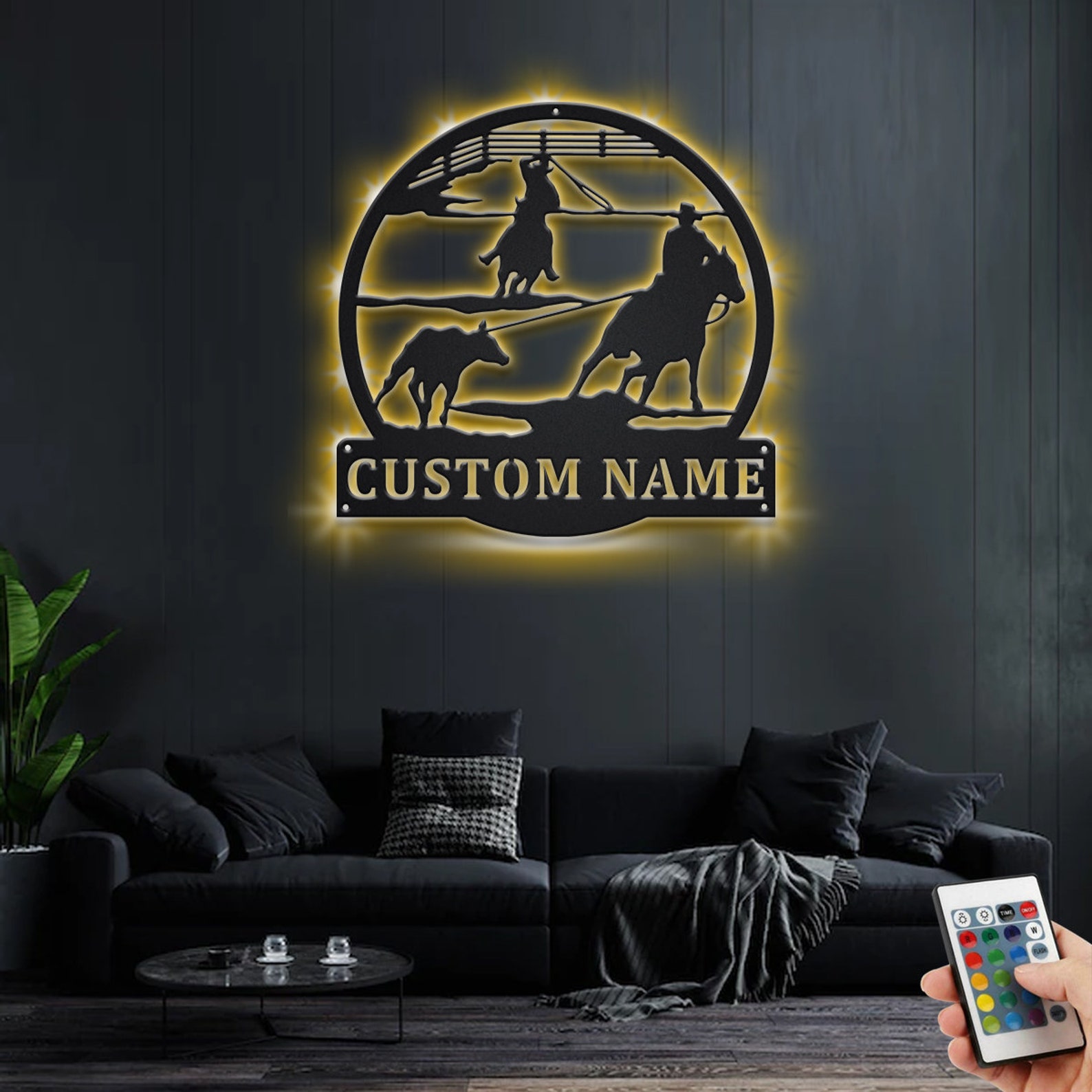 Be the first to review “Custom Team Roper Metal Sign with LED – Cowboy Room Decor”
