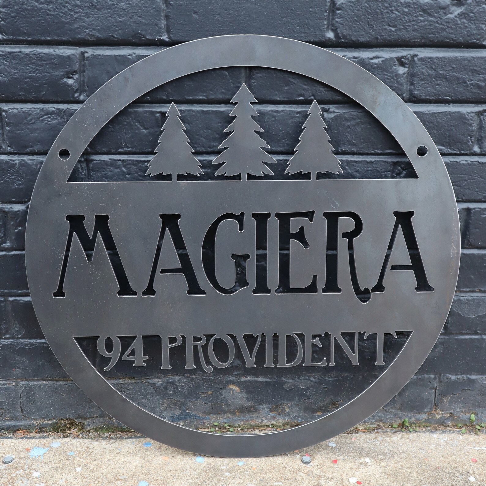 Customize this sign with an image: Oak Trees (1), Single Oak Tree (2), Pine Trees (3), Apple Trees (4), Tree Line (5), Dogwood Tree (6). Leave a Note to Seller at checkout with the image you would like.