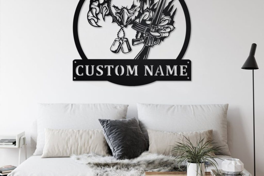 Custom US Eagle Veteran Metal Sign with LED – Room Decor