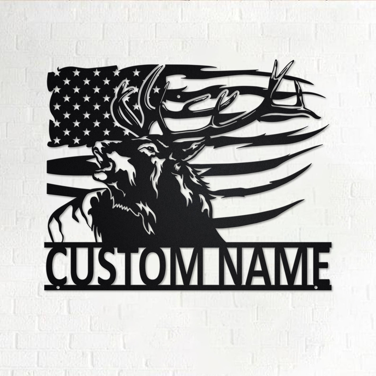 Custom US Elk Deer Metal Sign with LED – Room Decor