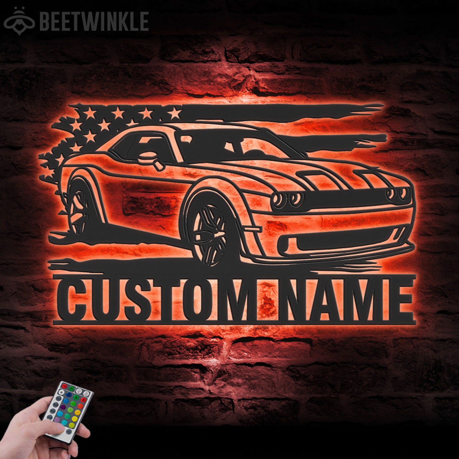 Be the first to review “Custom US Garage Muscle Car Metal Art with LED Light”