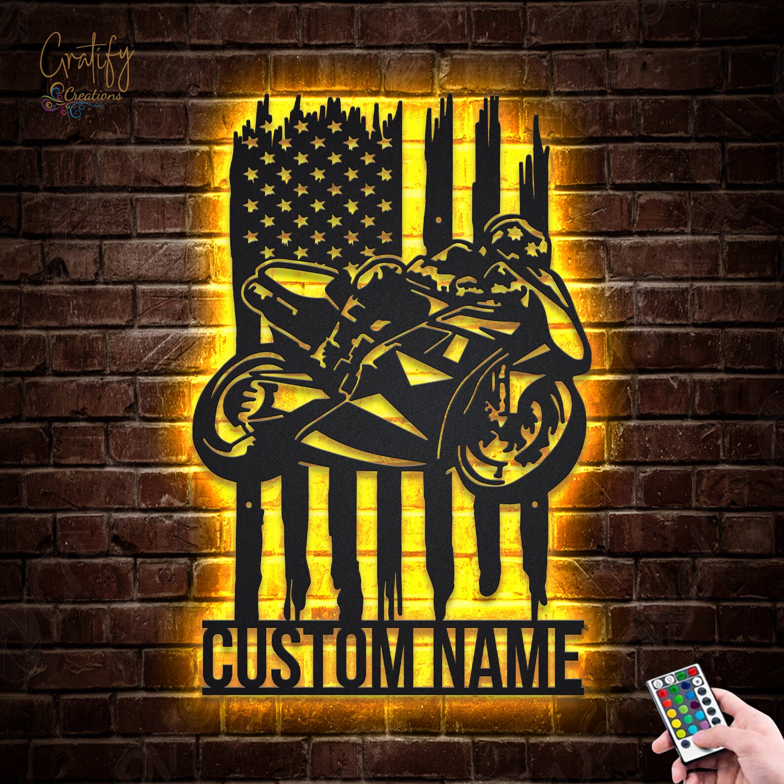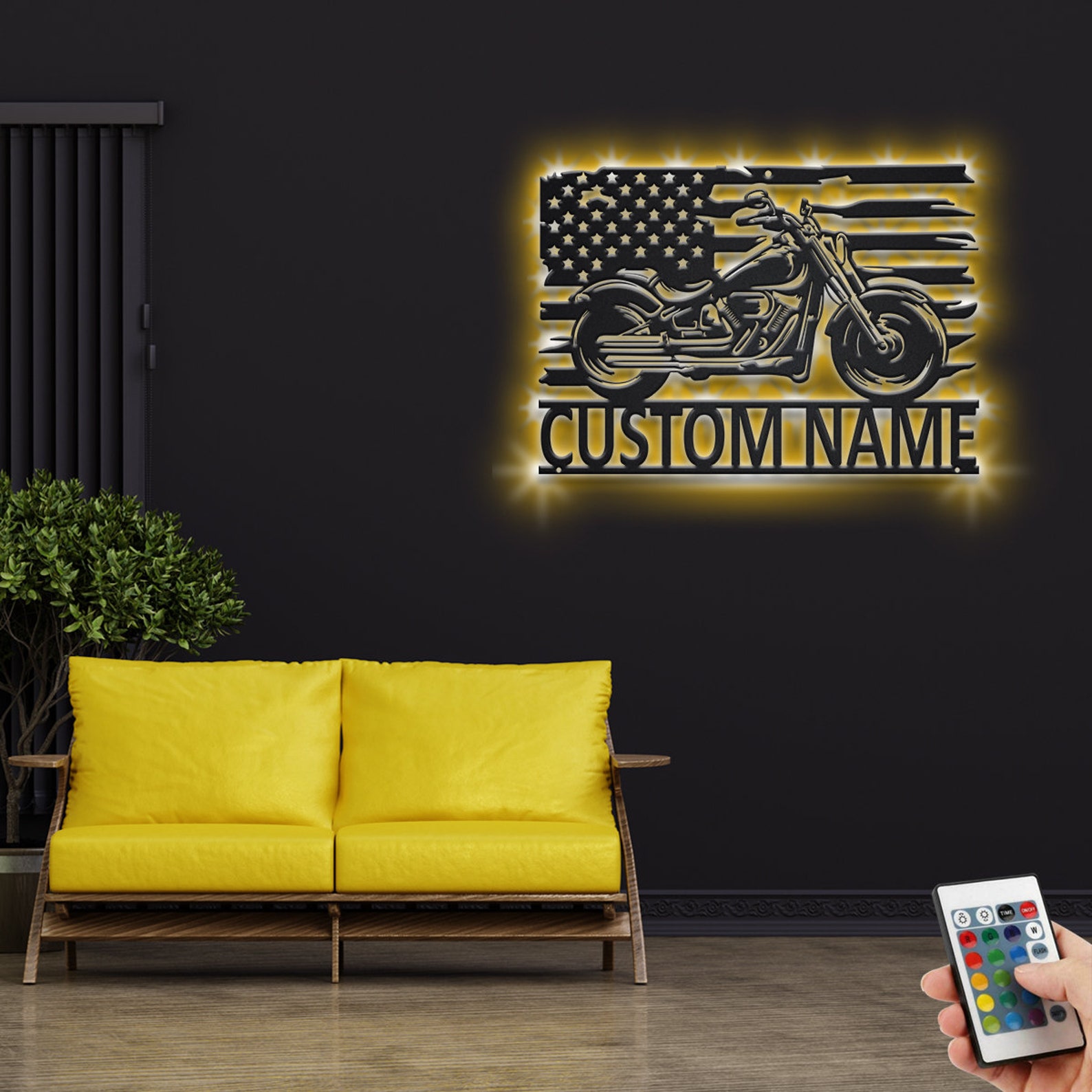 Be the first to review “Custom US Motorcycle Art with LED Light”