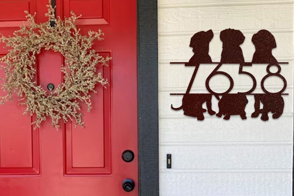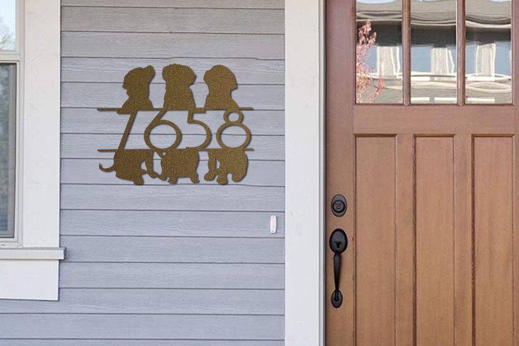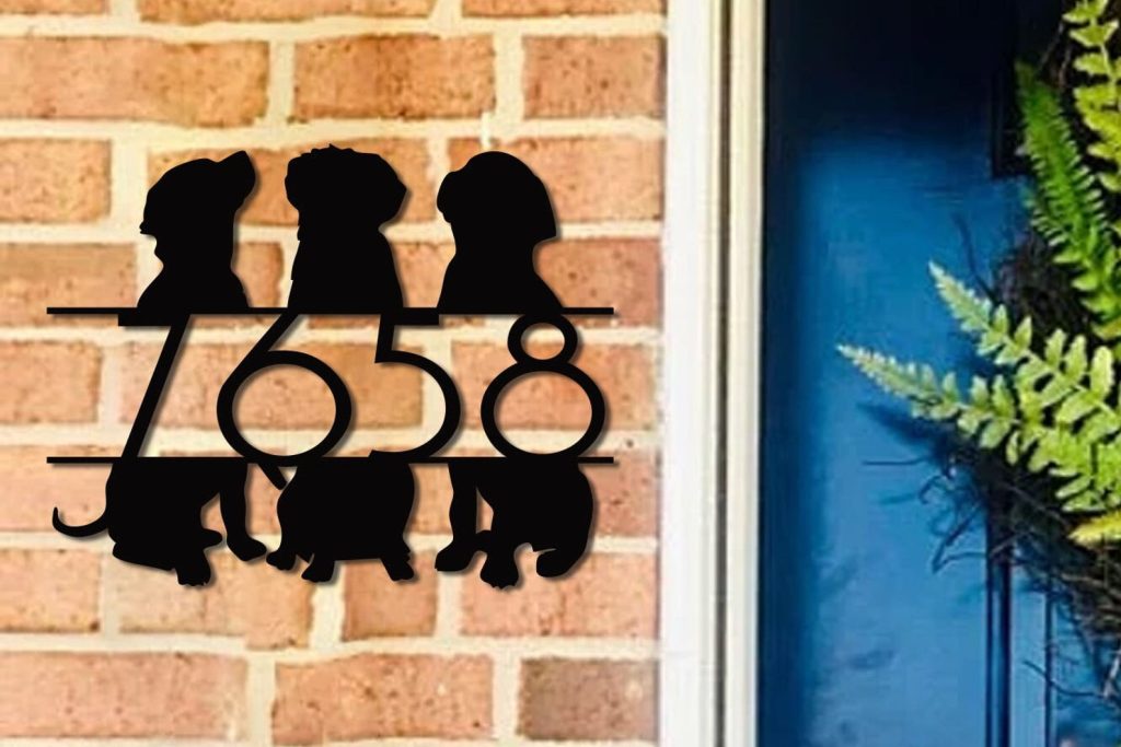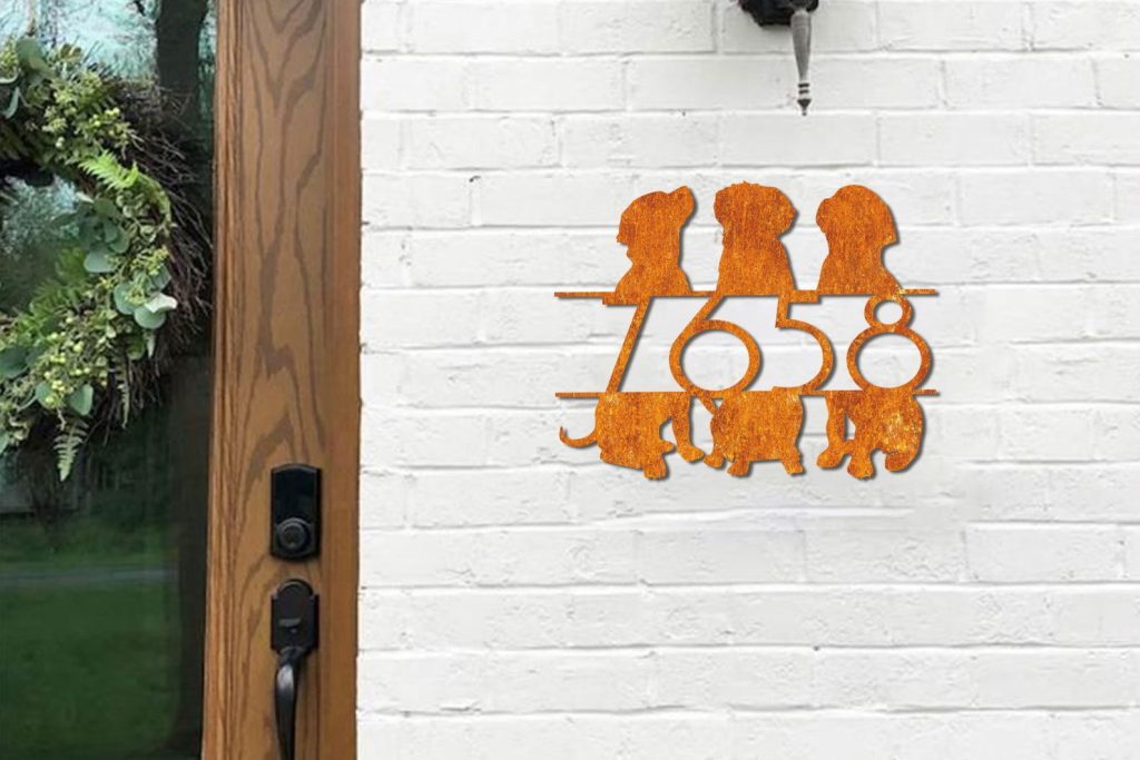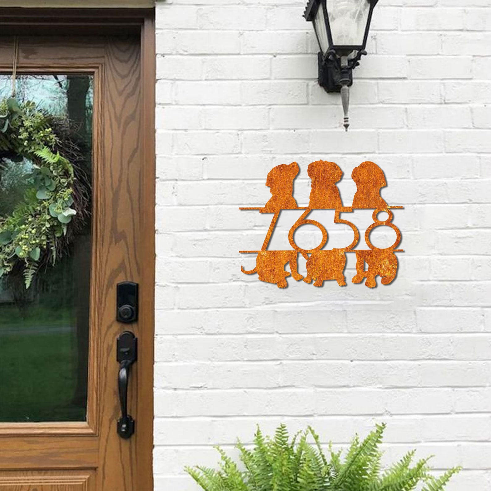 Personalized Outdoor Number Plate, Vertical Metal Dogs Address Sign, Custom Dog Metal House Number Sign, Dog Address Sign, Housewarming Gift