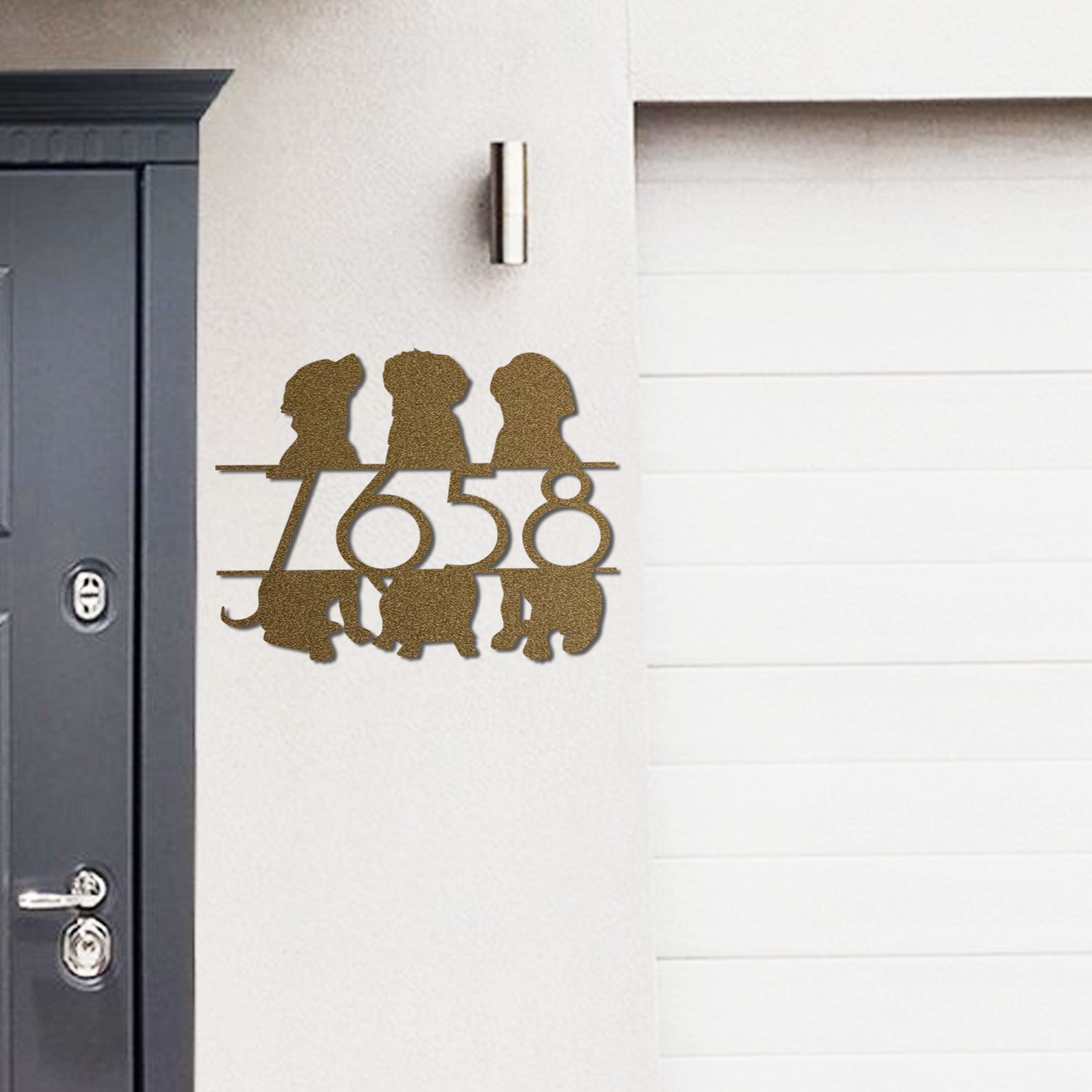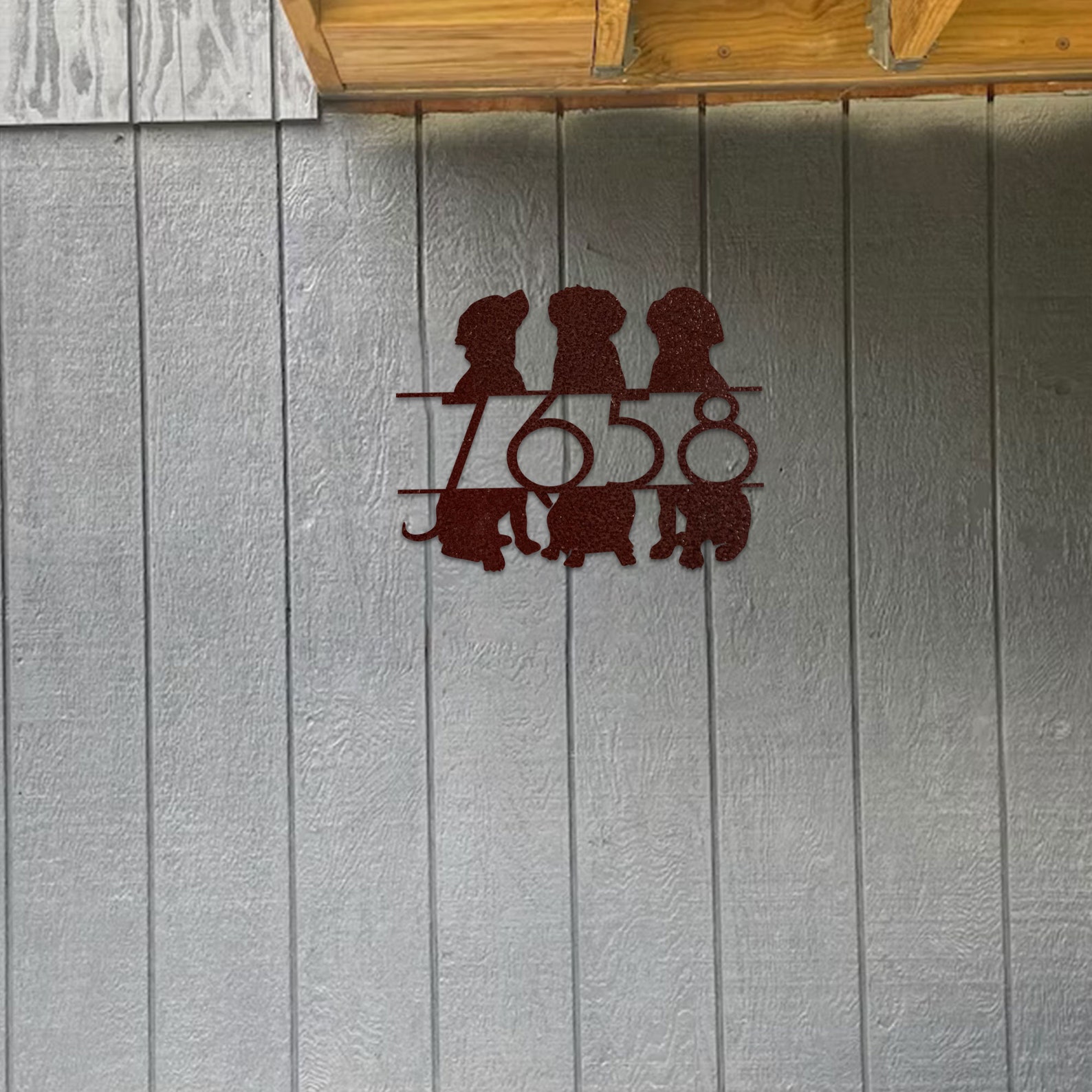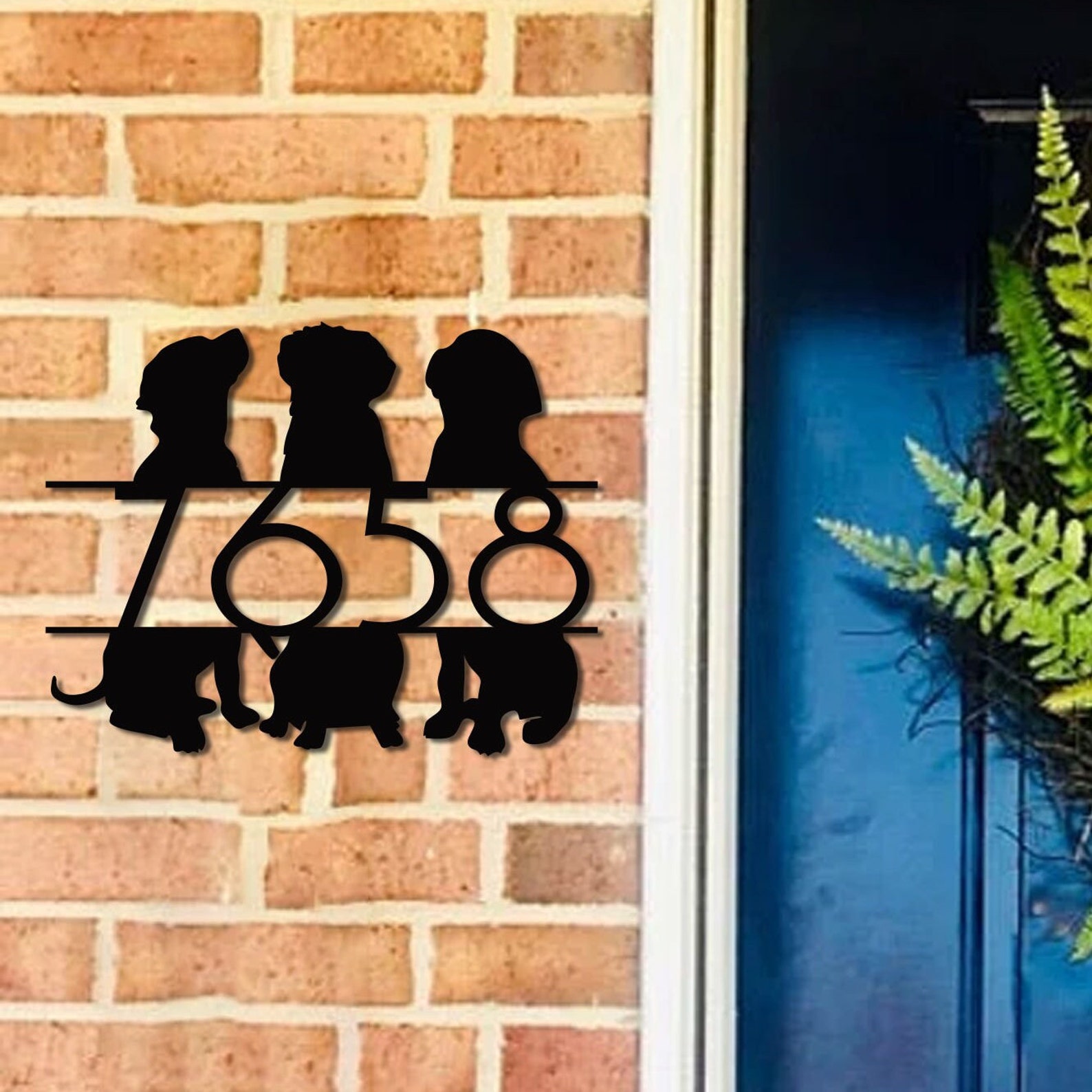 Custom 3 Dogs Metal House Number Sign, Horizontal Metal Address Sign, Dog Address Sign, Outdoor Number Plate, Housewarming Gift ,Animal Lover Gift, Personalized Gift, Metal Dog Plate